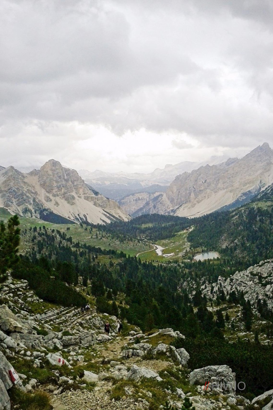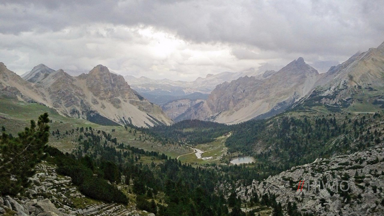 Dahinter schlängelt sich der Weg sanft zur Alpenmulde Klein-Fanes.