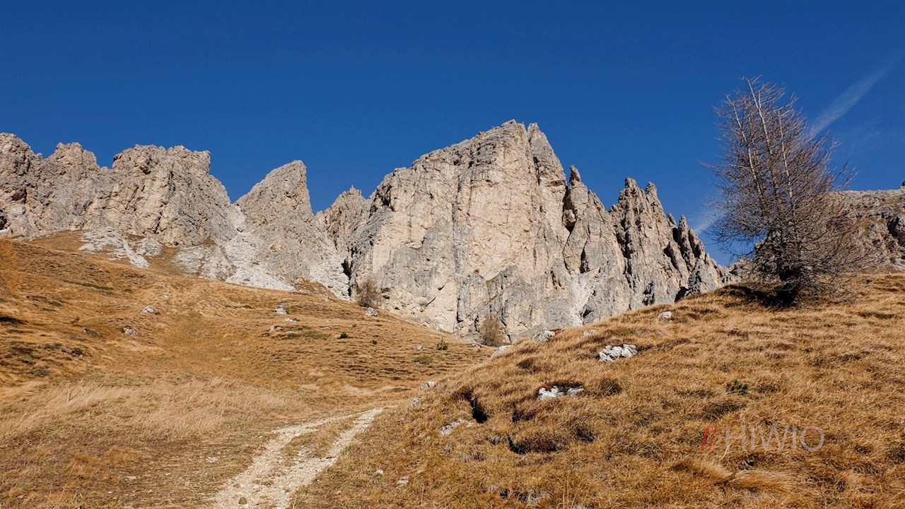 Die beliebte Gipfelwanderung nimmt auf einem der Parkplätze auf dem Grödner Joch ihren Anfang, welches Gröden mit dem Gadertal verbindet. Bereits von hier aus erblickt man die bizarr anmutenden Felstürme der Cirspitzen und das Gipfelkreuz der Großen Cirspitze, der unser heutiger Besuch gilt.