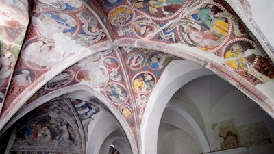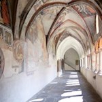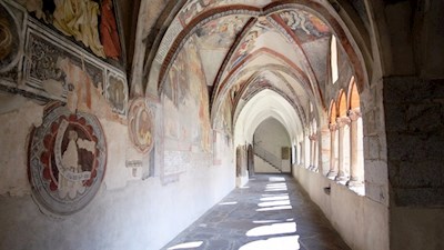 Bereits vor der Errichtung der Gewölbe war der Kreuzgang mit romanischen und frühgotischen Malereien geschmückt gewesen, von denen einzelne Fragmente noch erhalten sind. Die meisten der heute sichtbaren Fresken stammen jedoch aus der Zeit zwischen dem ausgehenden 14. und dem beginnenden 16. Jahrhundert. Da sich ihre Gestaltung somit über nahezu zwei Jahrhunderte zog, lässt sich an ihrem Beispiel die Entwicklung der hiesigen (spät)gotischen Malerei gut nachvollziehen. Die Darstellungen selbst sind thematisch großenteils dem Alten und Neuen Testament entnommen, weswegen sie dem einfachen Volk gewissermaßen als „Bibel“ dienten; daneben finden sich auch allegorische und antike Darstellungen.