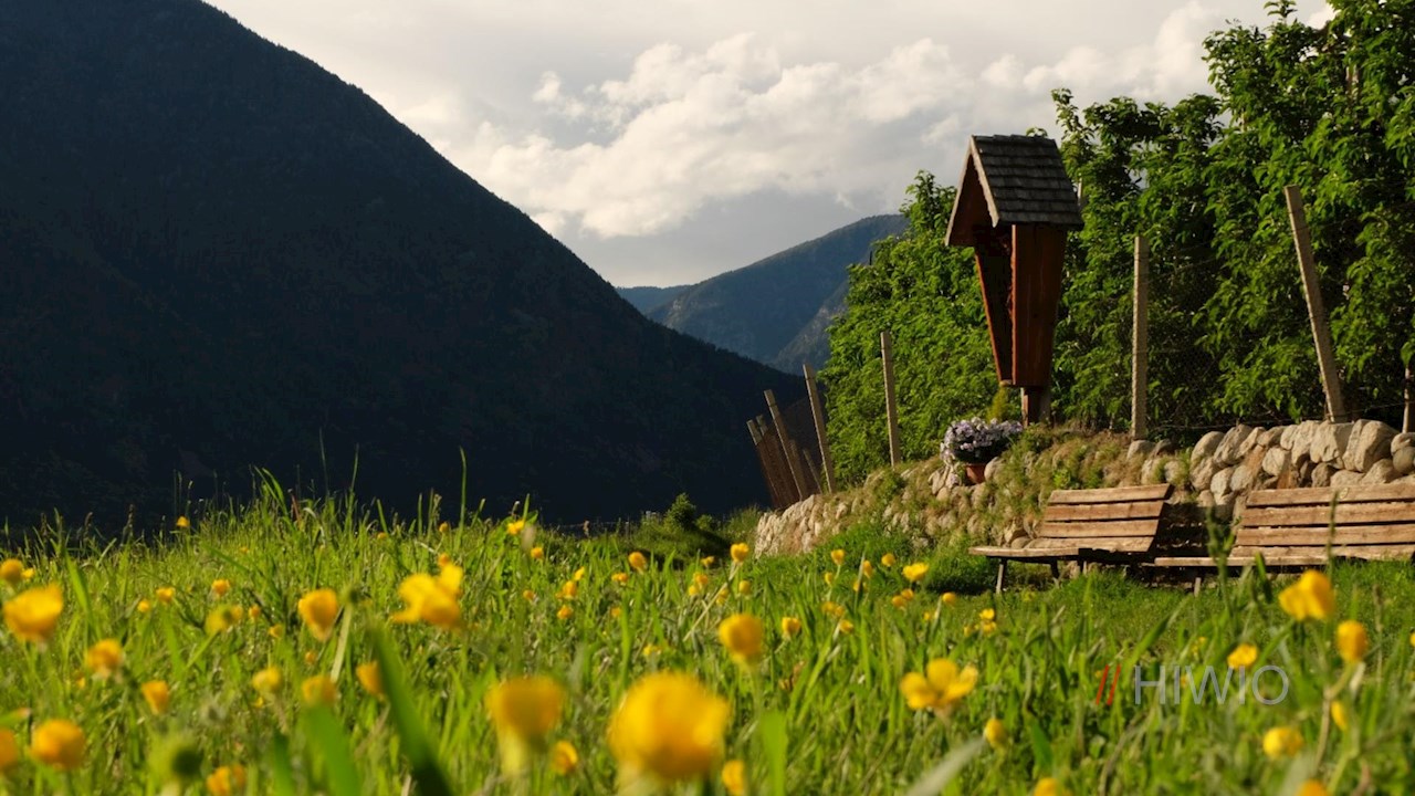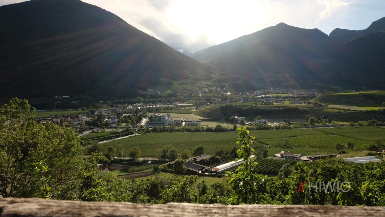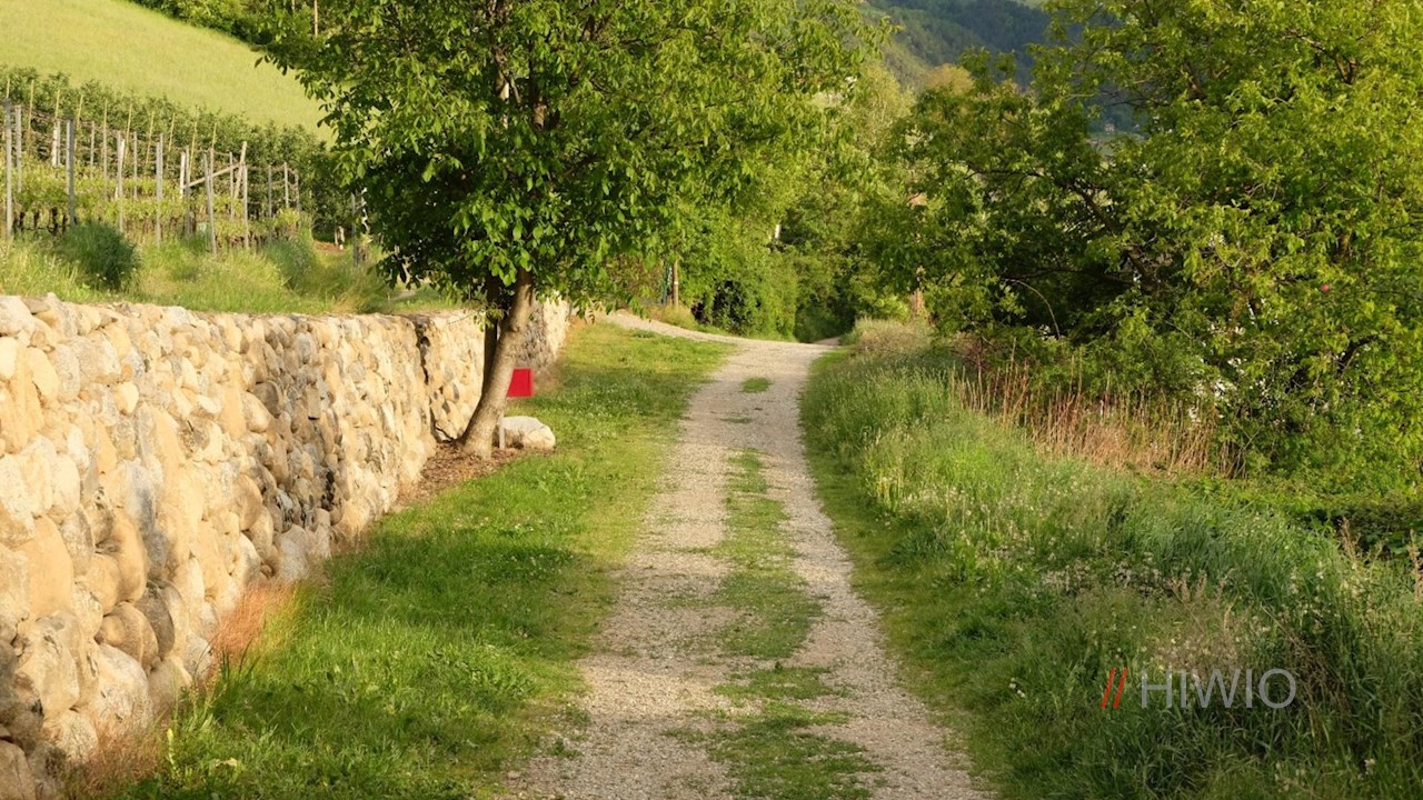 Schließlich gelangt man zu einer Unterführung, hinter der man dem rechts abzweigenden Asphaltsträßchen in Richtung Neustift folgt. Dieses führt an malerischen Apfelwiesen vorbei zur Neustifter Sportzone.