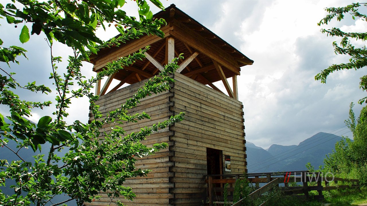 Hierauf lohnt ein kurzer Abstecher auf den nahen Pinatzbühel. Es handelt sich um eine vom Gletscher abgeschliffene Kuppe, die bereits in der Bronzezeit besiedelt war. Außerdem thronte hier einst eine von mächtigen Steinwällen und Palisaden umfriedete Wallburg, die einerseits als Handwerkstätte und andererseits als Rückzugsort bei Gefahren diente.