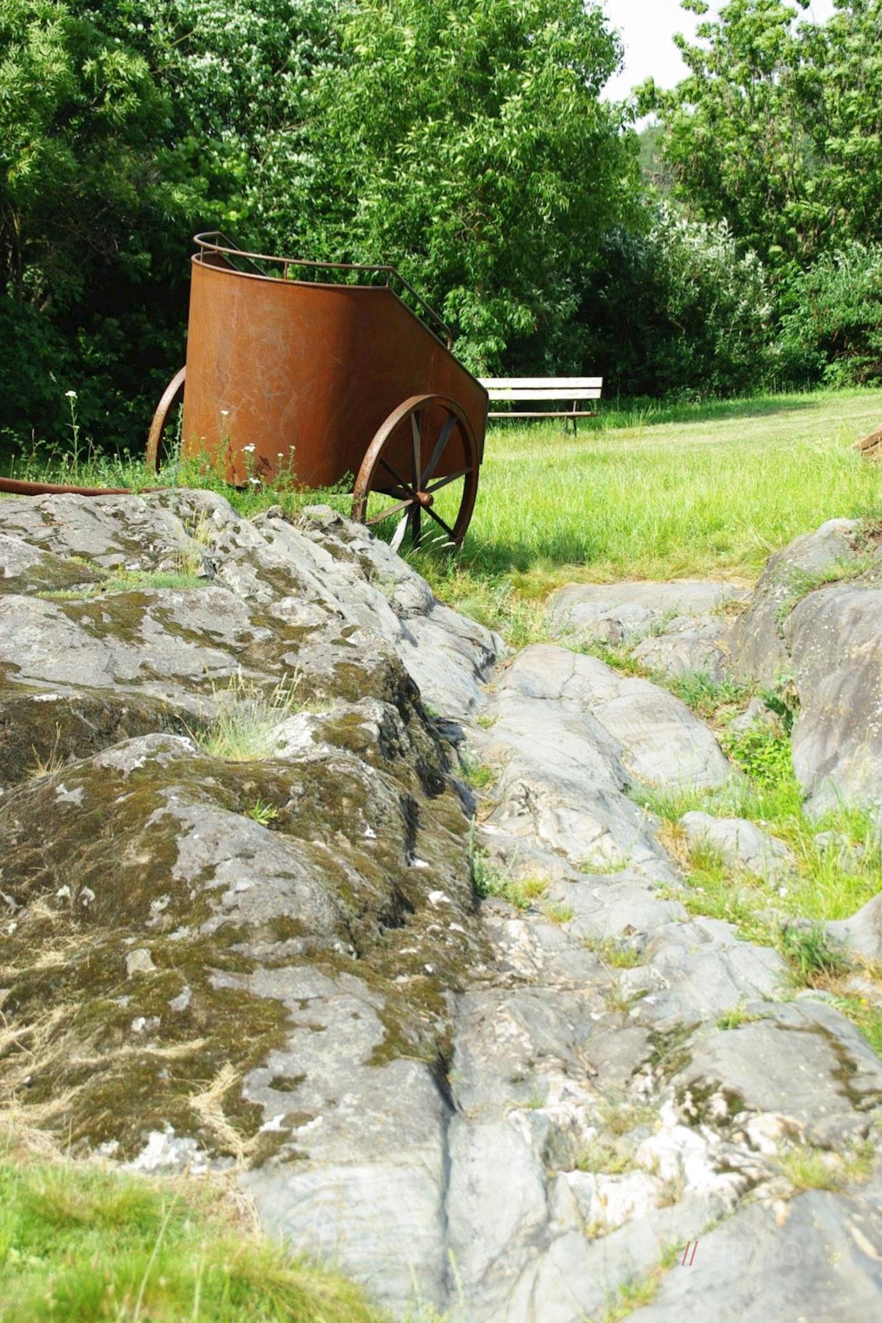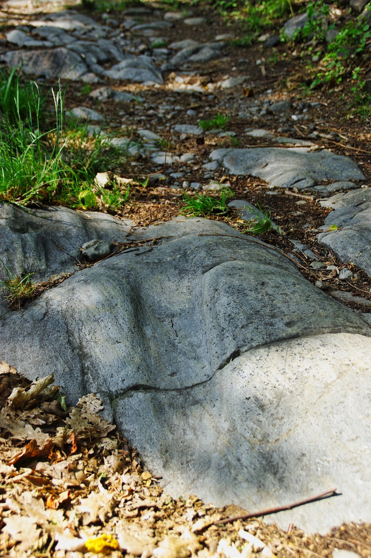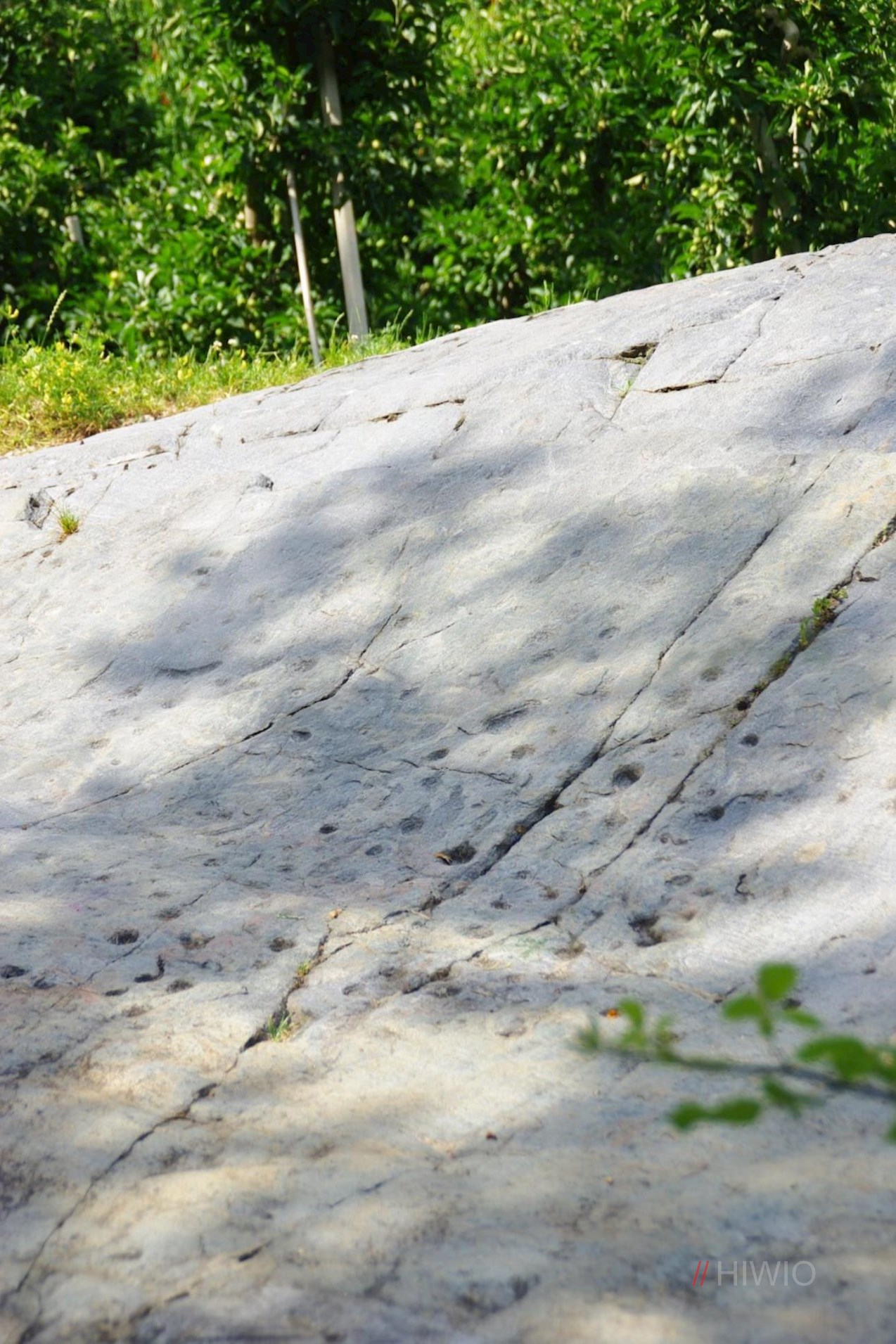 Nunmehr der Markierung Nr. 1 folgend, wandert man im sanften Anstieg in Richtung Elvas weiter. Unterwegs kommt man unter anderem an mystischen Schalensteinen und einem hohen Holzturm vorbei, der den römischen Türmen nachempfunden wurde. Dass er gerade hier aufgestellt wurde, ist übrigens kein Zufall: Von hier aus blickt man direkt auf die Wohnzone „Rosslauf“ hinab, wo Archäologen vor einigen Jahren die Überreste eines mit Palisaden und Türmen befestigten römischen Lagers ans Tageslicht brachten.