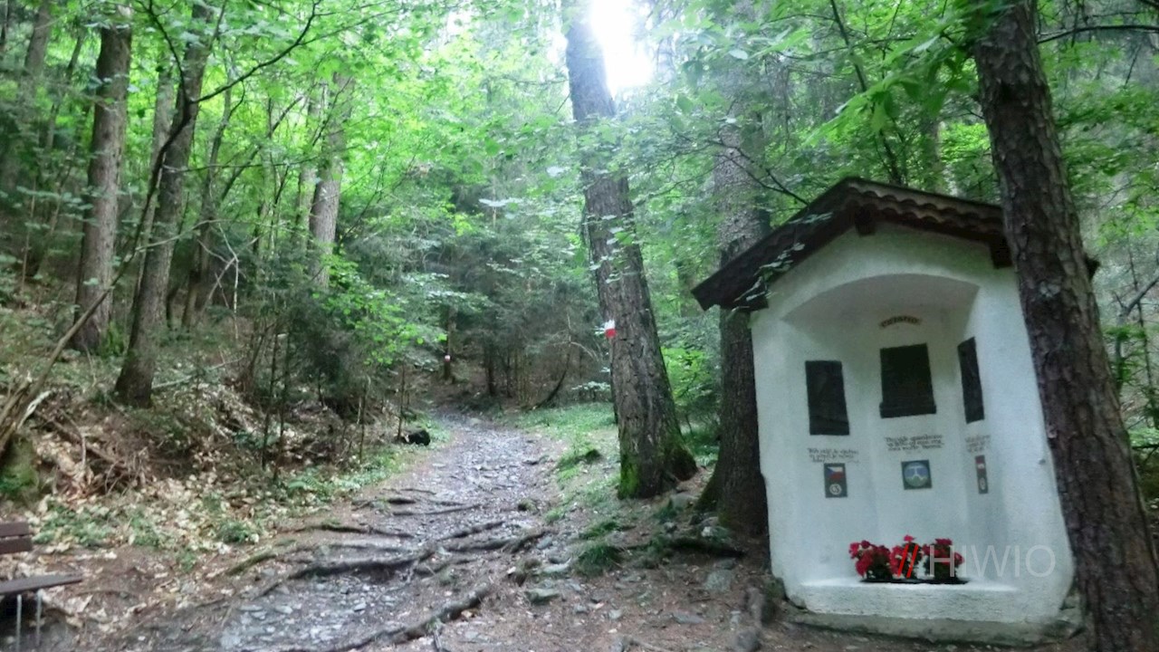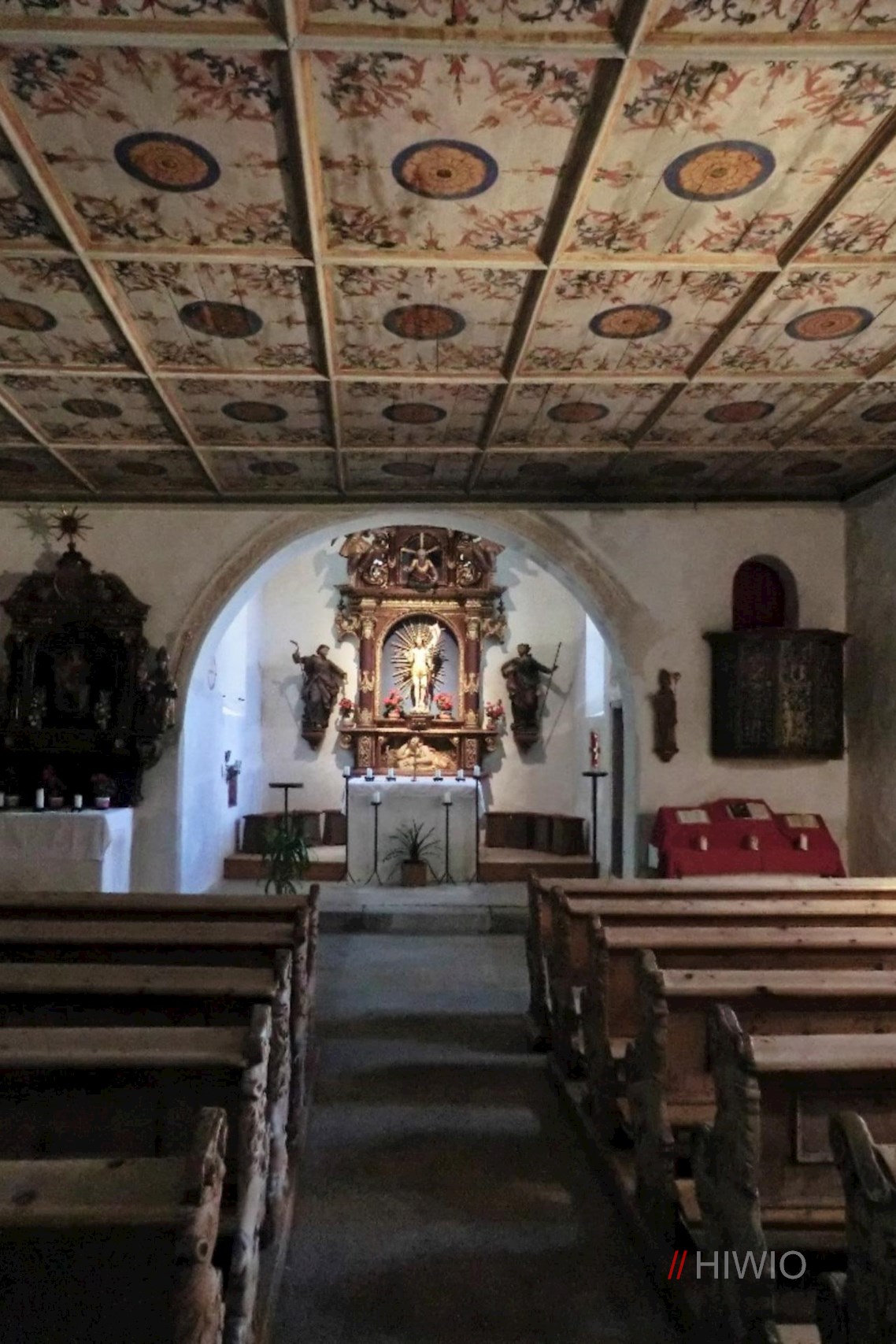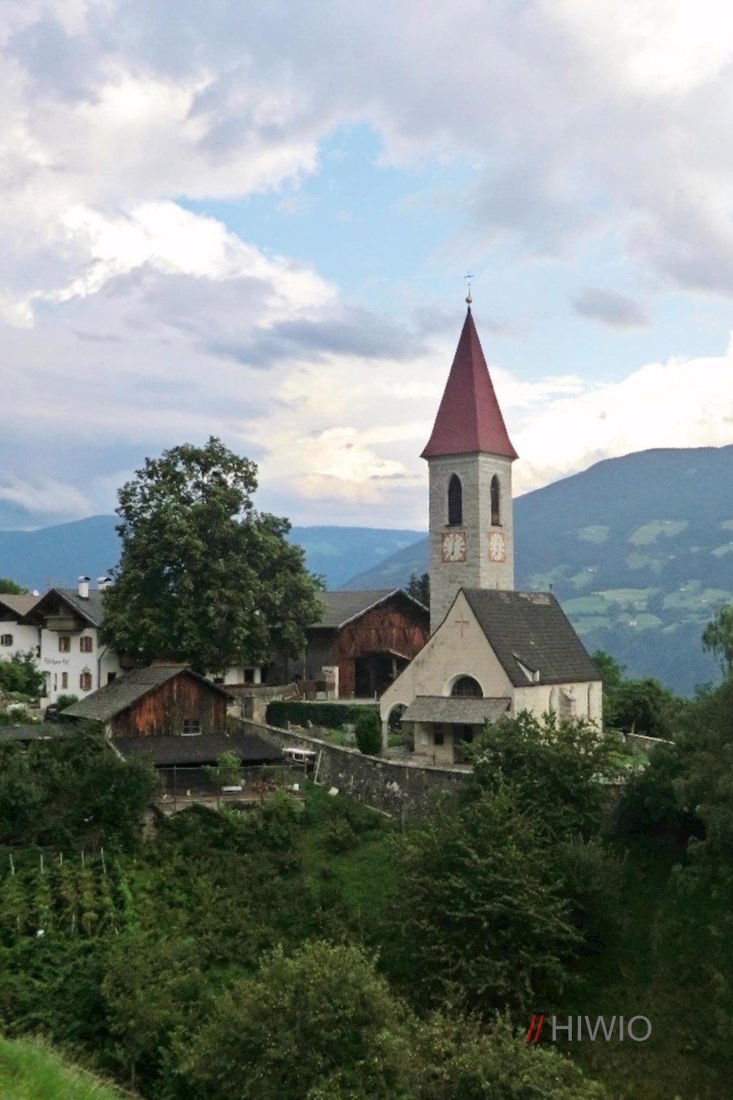 Nach dem Besuch des Kirchleins wandert man auf dem Weg Nr. 8 zum beschaulichen Weiler Tils, von dem der Weg Nr. 20 nach Pinzagen absteigt.