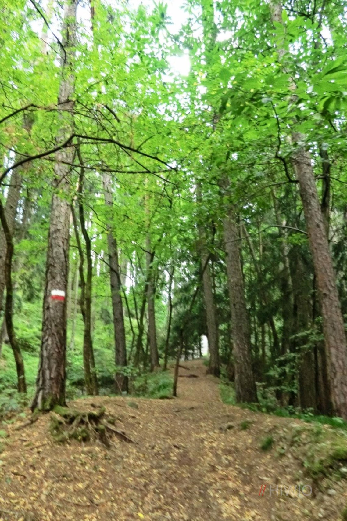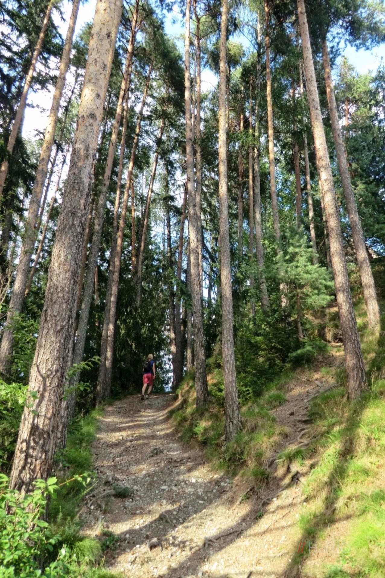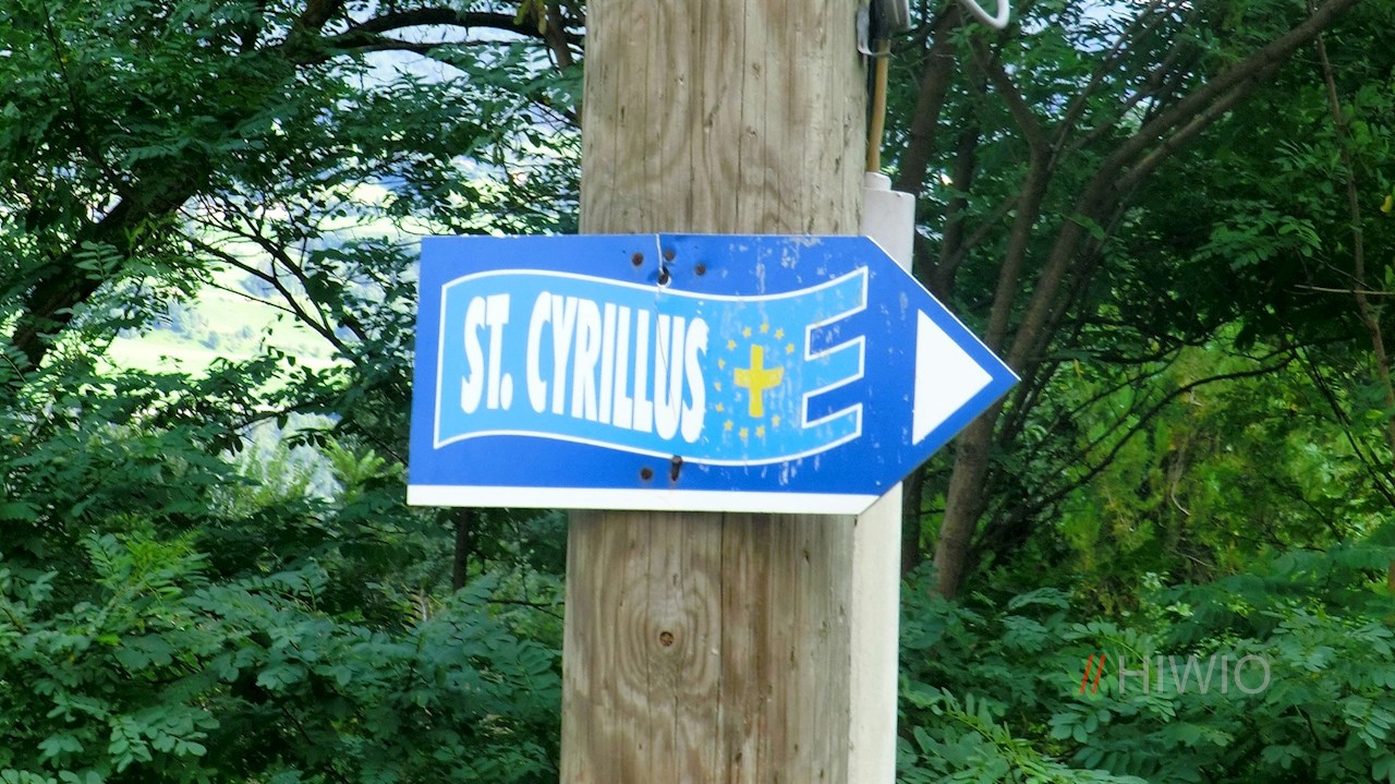 In einer Kehre zweigt rechts der Europabesinnungsweg ab. Mit acht Stationen geschmückt, führt er durch den Wald zum Kirchlein St. Cyrill, das auf etwa 800 m Höhe auf einem Waldhügel thront.