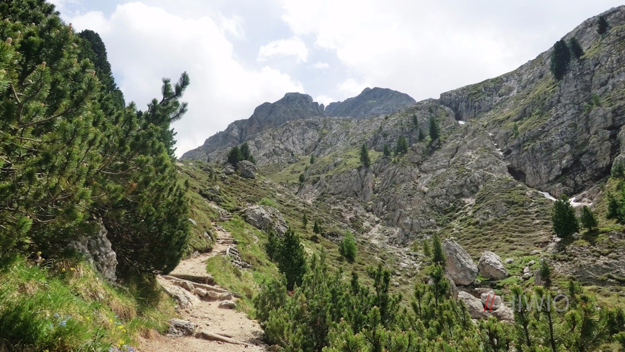 Am Parkplatz schlägt man den Weg Nr. 1 in Richtung Peitlerkofel ein, der alsbald in den Weg Nr. 4 übergeht. Er führt im steten, bisweilen recht steilen Anstieg durch eine felsige Schlucht auf die Peitlerscharte.