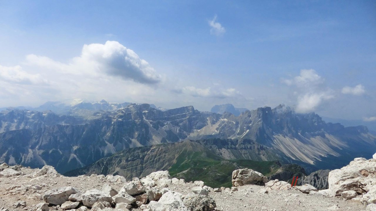 Nach einer etwa zehnminütigen Kletterpartie im Fels führen die letzten Anstiegsmeter über einen steinigen Pfad. Wenig später erreicht man auch schon das Gipfelkreuz des Großen Peitler, der mit einem atemberaubenden Panoramablick auf die Südtiroler Bergwelt aufwartet - nicht von ungefähr zählt der Peitler zu den aussichtsreichsten Gipfeln Südtirols.