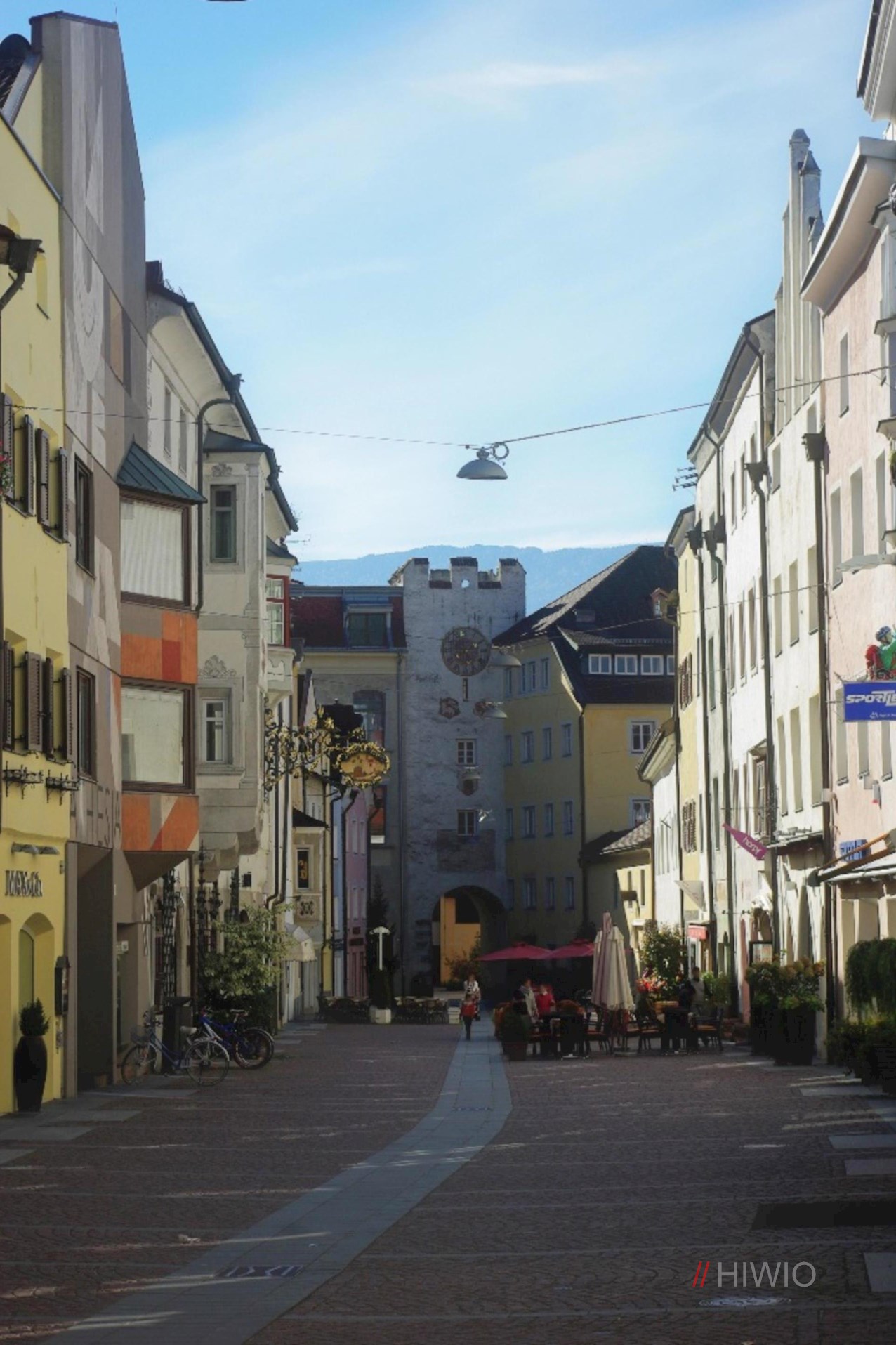 Die breite, kopfsteingepflasterte Stadtgasse ist das Herzstück der Stadt Bruneck.