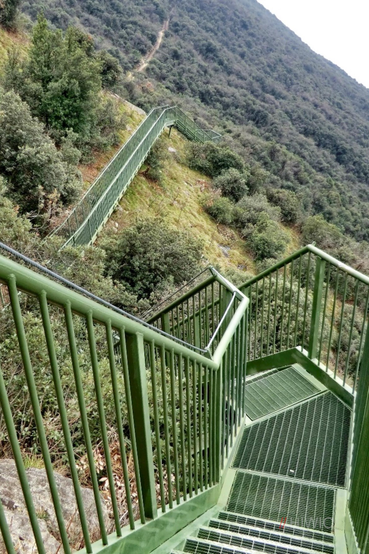 Then comes the real highlight of the hike: on three metal staircases, elaborately hewn into the almost vertical rock faces, you descend comfortably and safely over the otherwise almost insurmountable mountain slopes. On them you not only enjoy a picturesque view of lake Garda - the grids of the total of 387 steps also provide a dizzying view downwards...