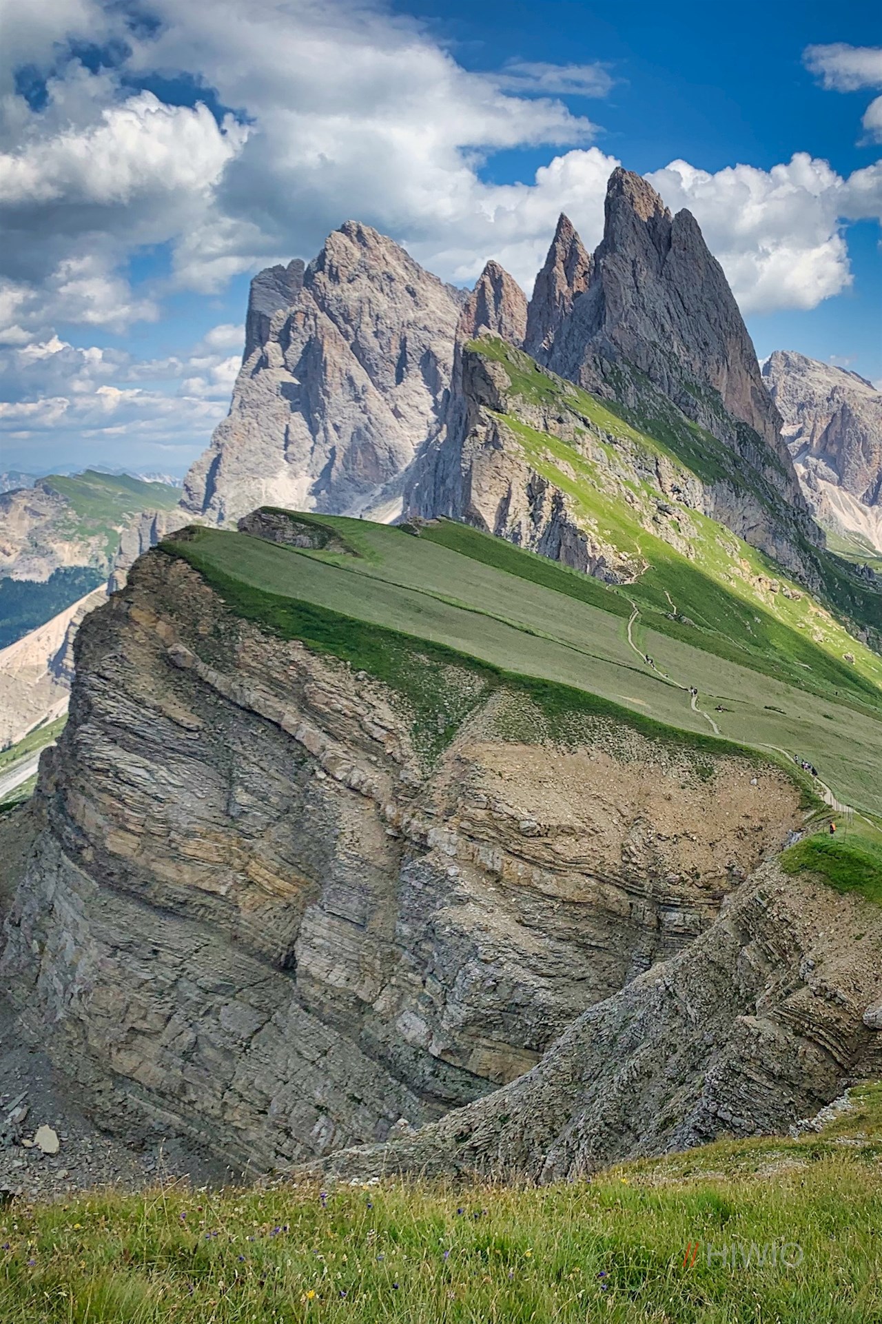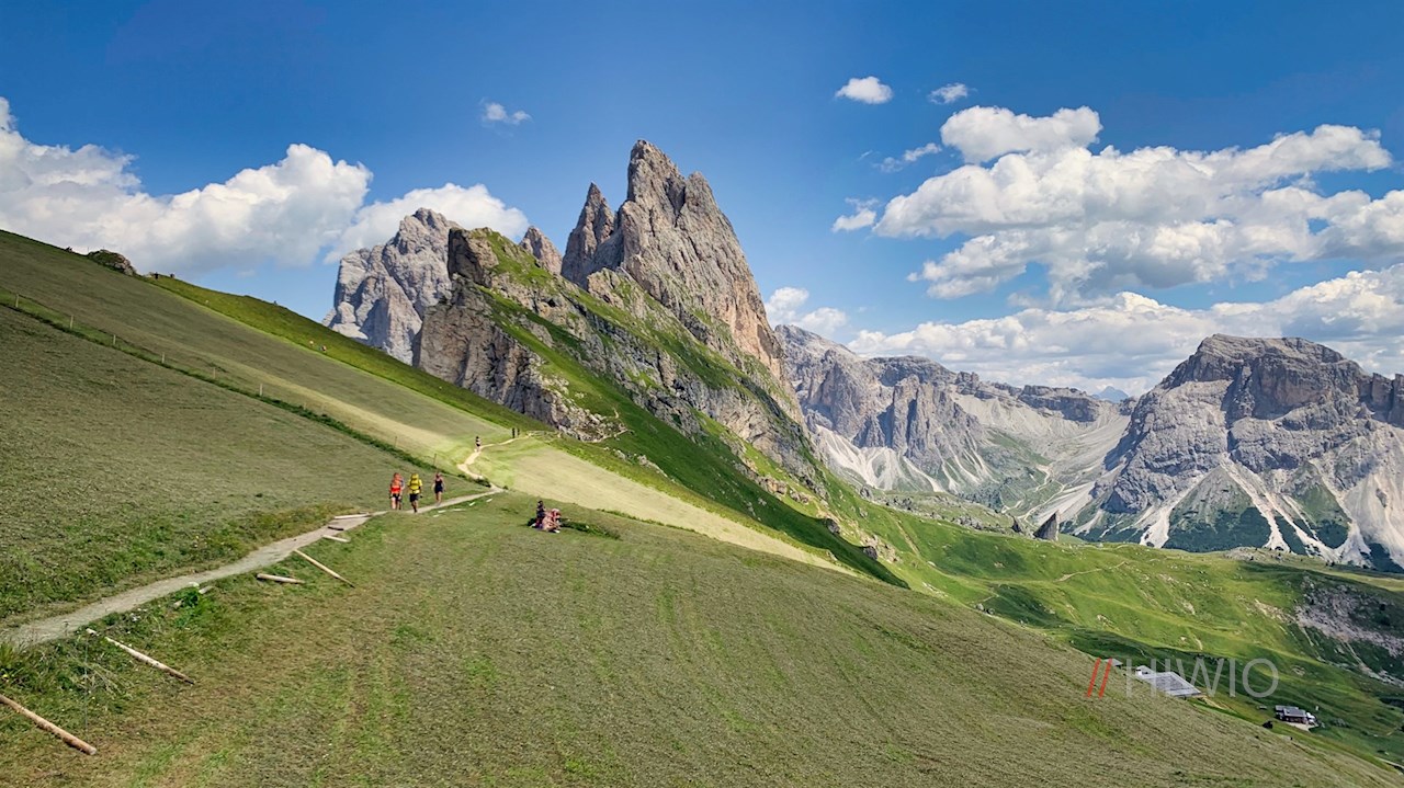 It winds in front of an enchanting backdrop up to the 2,518 m high Seceda. Its gently undulating mountain meadows contrast enchantingly with the Dolomites towering all around, of which the Odla peaks towering to the side in particular attract all glances - and photo lenses.