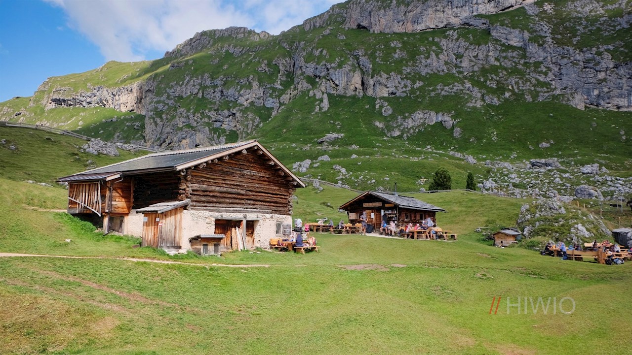 After three quarters of an hour of leisurely hiking, the rustic Pieralongia mountain hut invites you to take your first break. Amidst the gently rolling meadows at the foot of the Fermeda peaks, the friendly hut team serves its guests simple hut dishes, fresh milk, homemade yogurt and homemade pastries from early June to mid-October (as of 2021).