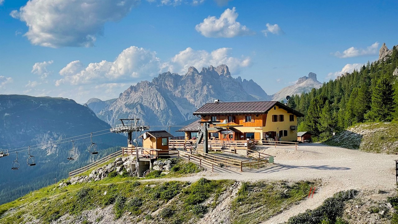 After almost 400 meters of ascent, the Rifugio Col de Varda mountain hut at the foot of the Cima Ciadin de Misurina invites you to take a break. But before that, you should not miss the short ascent to the Col de Varda towering next to it.