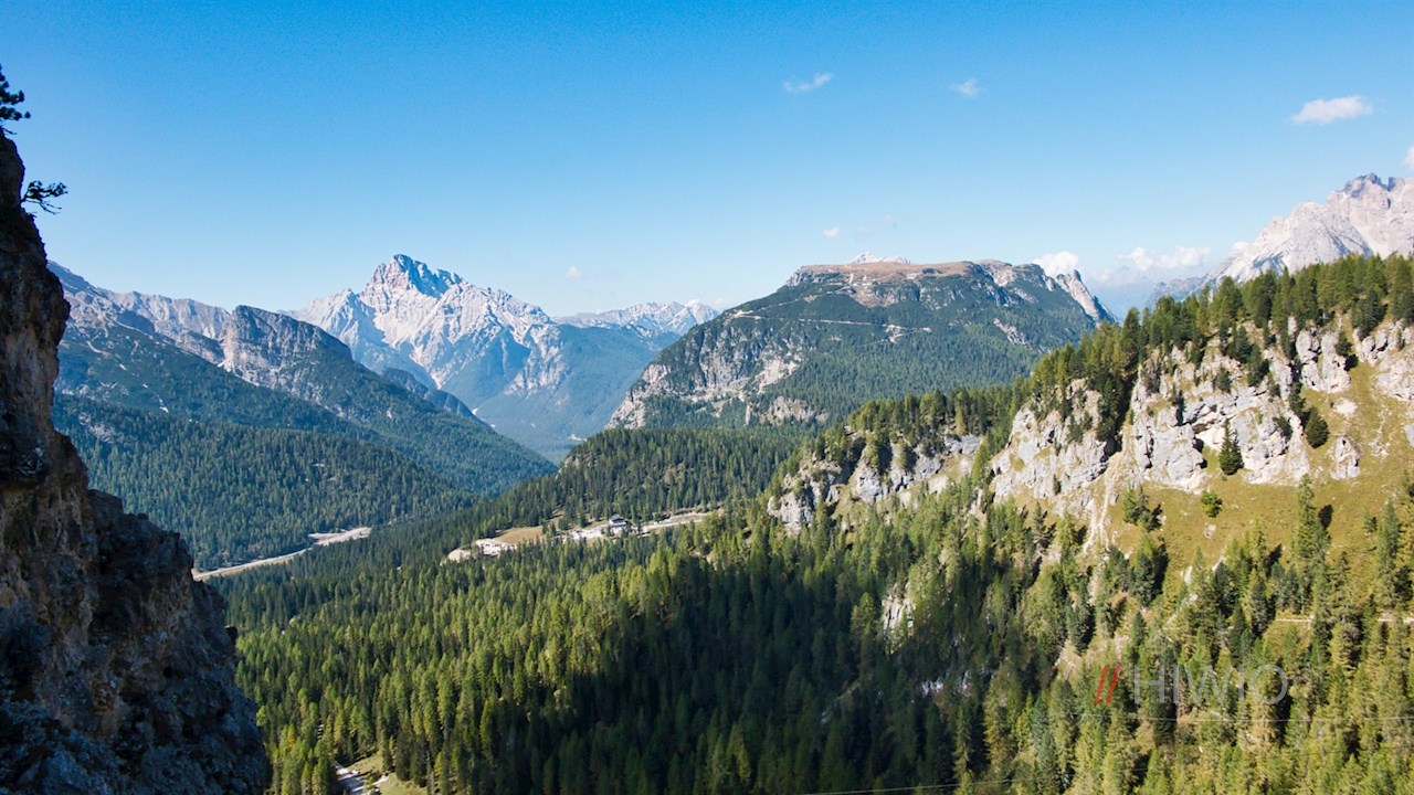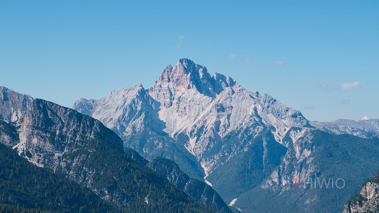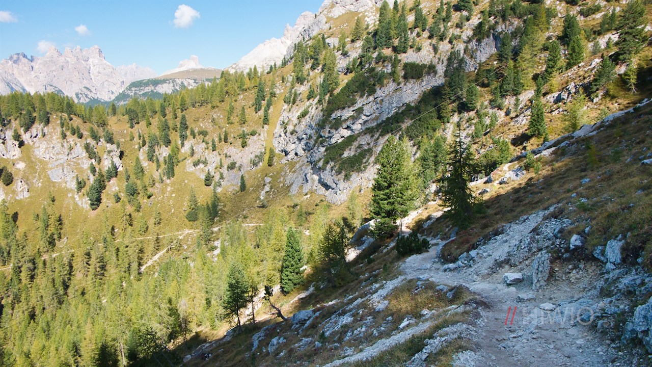 Gradually the forest thins out to reveal the striking, red-colored Croda Rossa, the historic Monte Piano and the Picco di Vallandro behind it.
