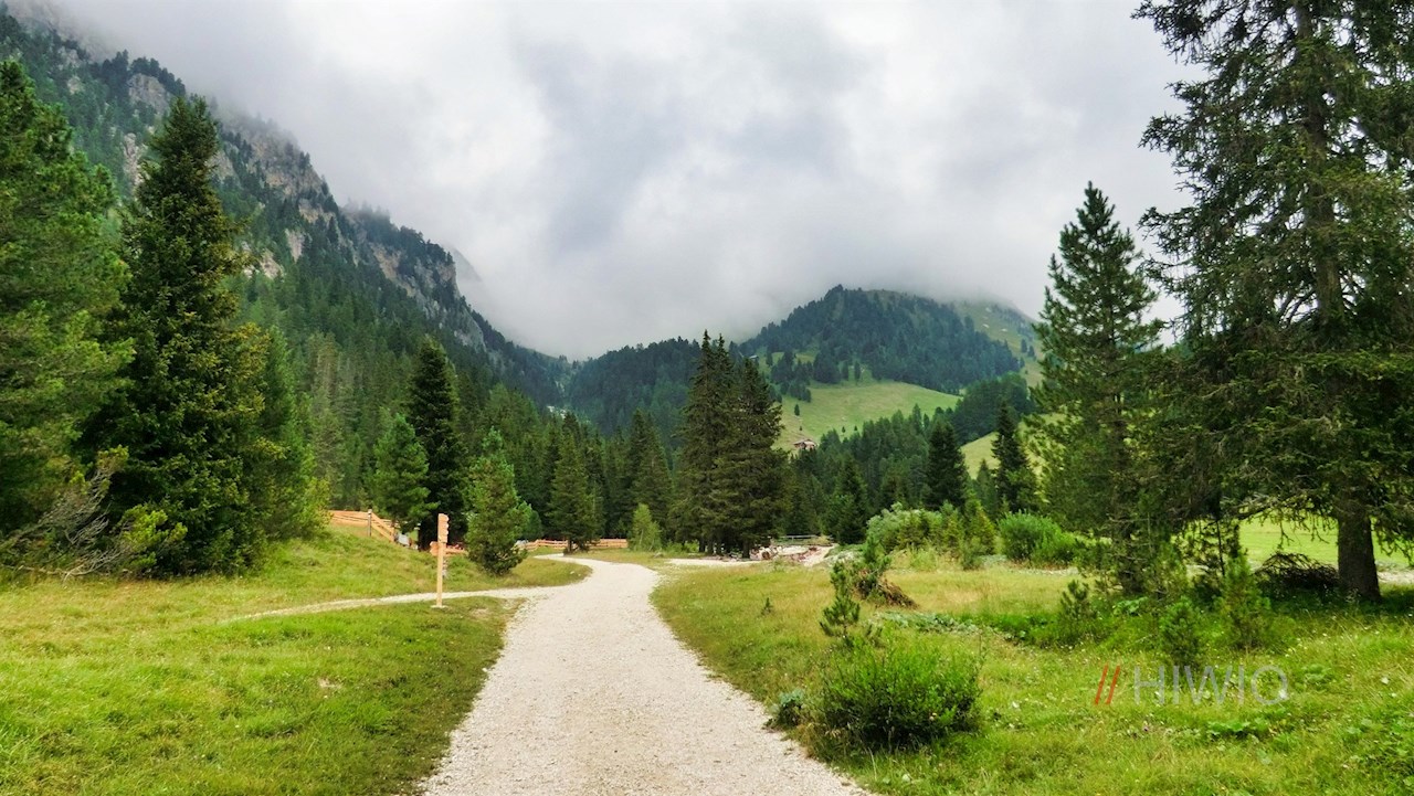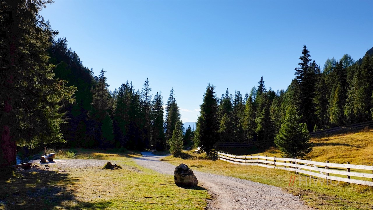The hike to the Gampenalm mountain hut starts at the parking lot for hikers in Zannes at the head of the val di Funes valley. Always following trail number 33 in the direction of the Gampenalm mountain hut, the wide, pleasantly ascending hiking trail first leads through the sparse fores, which now and then offers dreamy views of the nearby Geisler peaks, the Seceda and the Rasciesa.