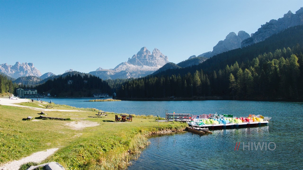 The hike to Città di Carpi mountain hut starts at the idyllic Misurina lake in the province of Belluno, which is also called the "Pearl of Cadore" because of its clear water and picturesque scenery. At the southern end of the idyllic Misurina lake, the Col de Varda car park has some parking facilities.