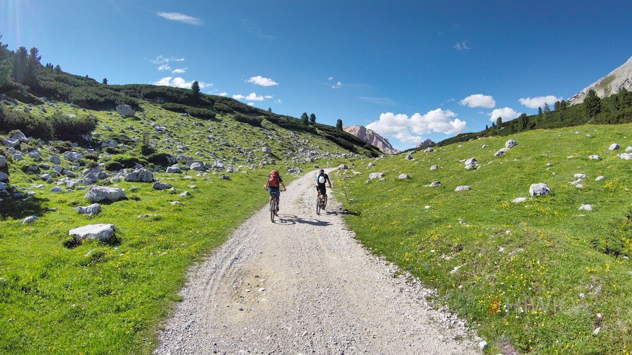 The wide path to the Fanes mountain hut is also designated as a MTB route.
