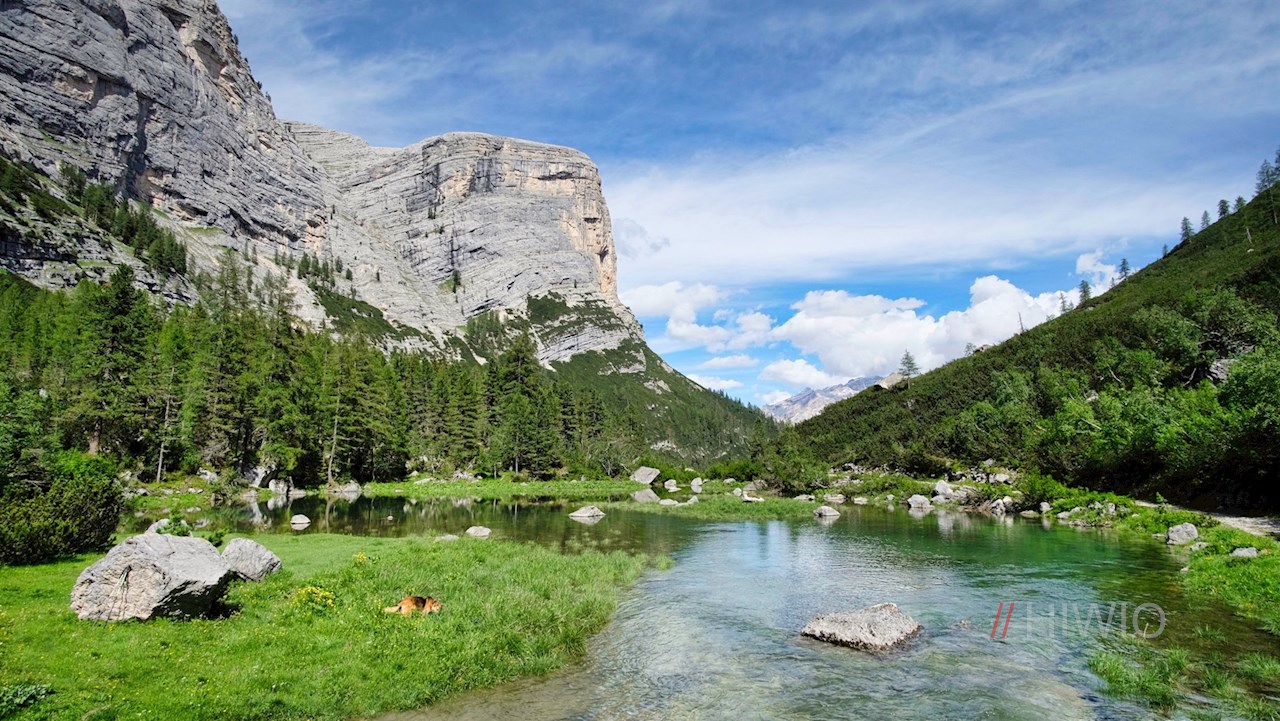 Always following path number 10, the initially asphalted path leads along the crystal clear Val di Fanes valley. Along the way, information boards provide information about the lush plant diversity that thrives here. Particularly prominent is the rare lady's slipper orchid, which is a protected species.