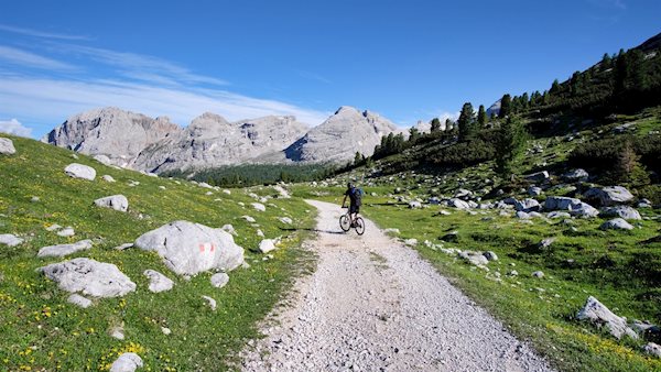 The wide path to the Fanes mountain hut is also designated as a MTB route.