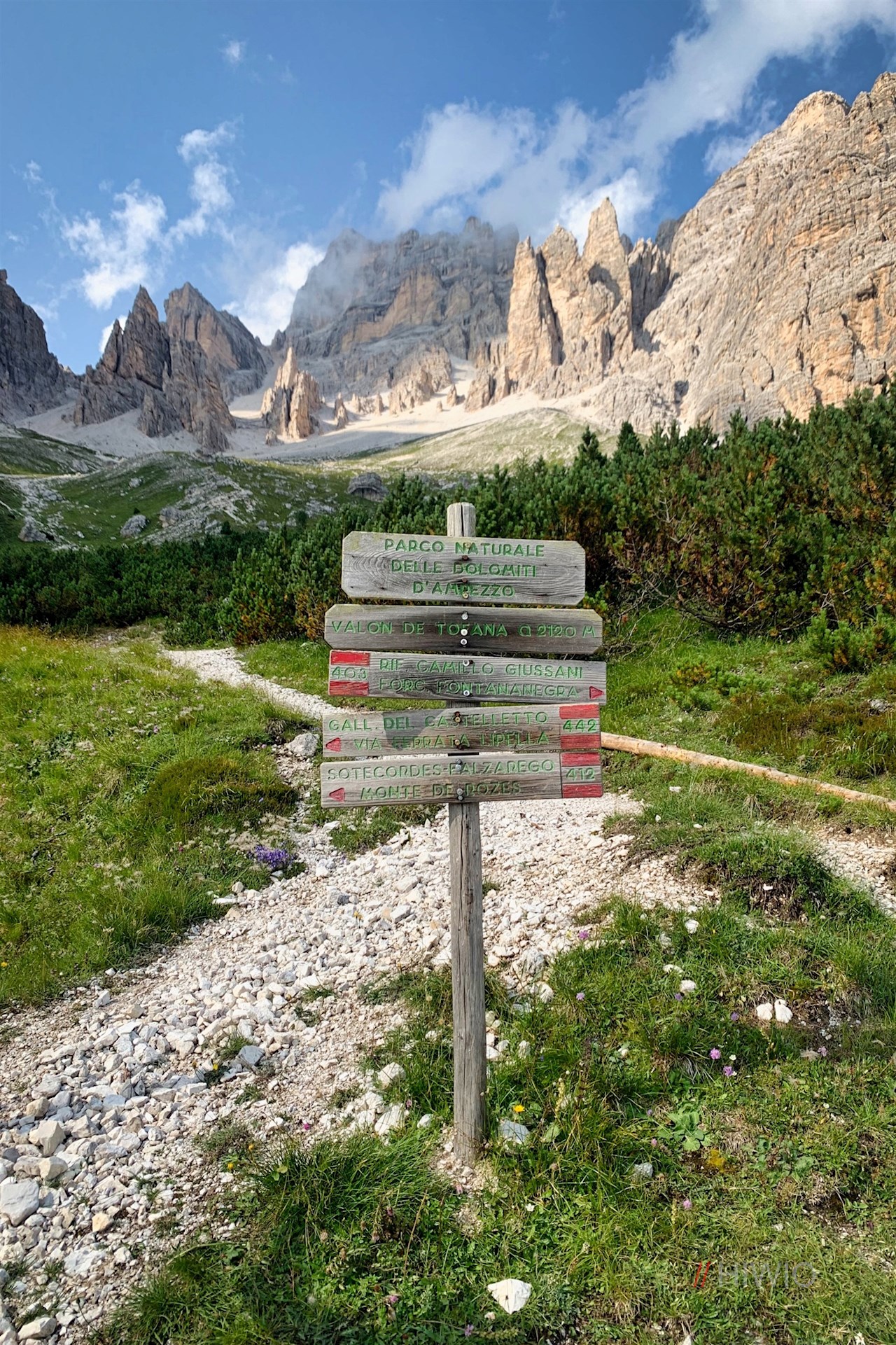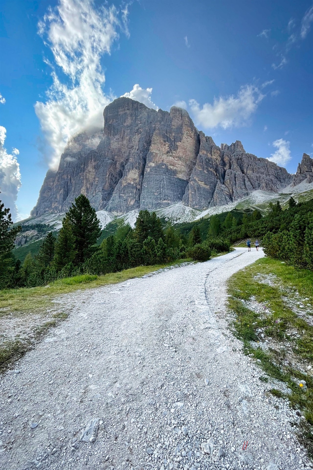 The hike to the Giussani mountain hut starts from the parking lot next to the rifugio Dibona mountain hut, which is reached by an almost entirely asphalted forest road that branches off from the Falzarego pass road (Fedarola fork).