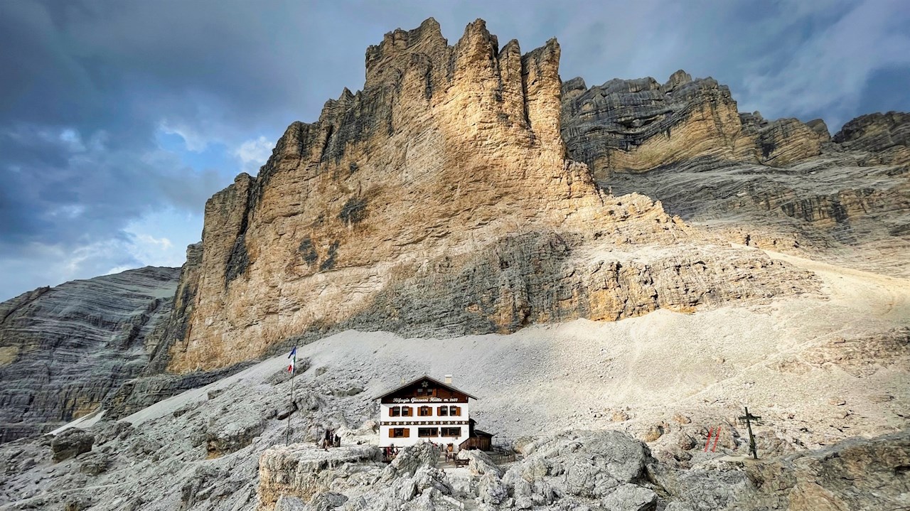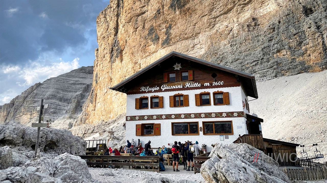 The Giussani mountain hut at the foot of the Tofana di Rozes and the Tofana di Mezzo is not only the starting point of beautiful hikes and climbs, but also a nice hiking destination in itself.
