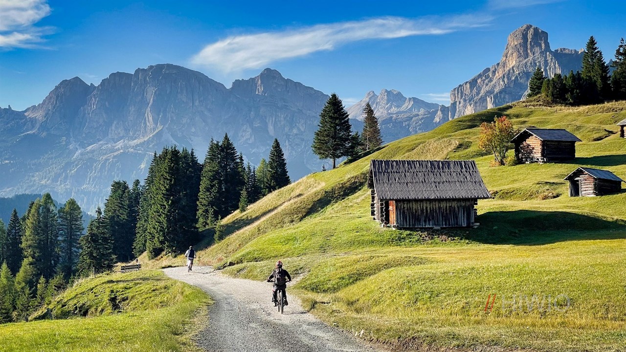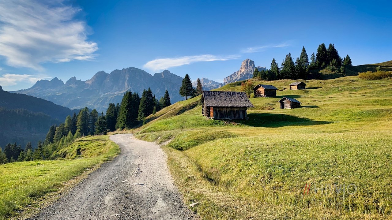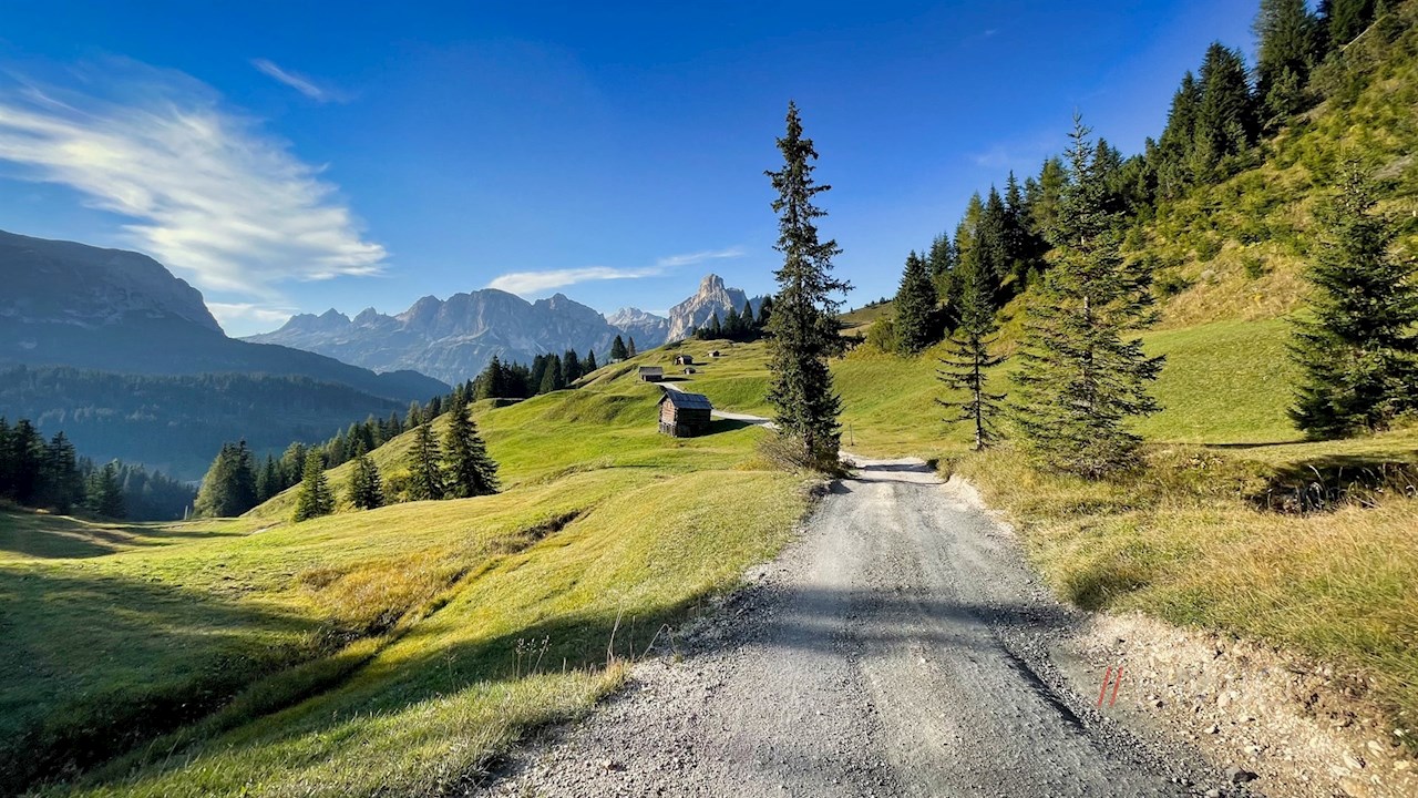 The way back from the mountain hut La Marmotta is the same as on the way there, where beautiful views of the Cir peaks, the Sass Ciampac, the Puez group and the Sassongher peak now open up.