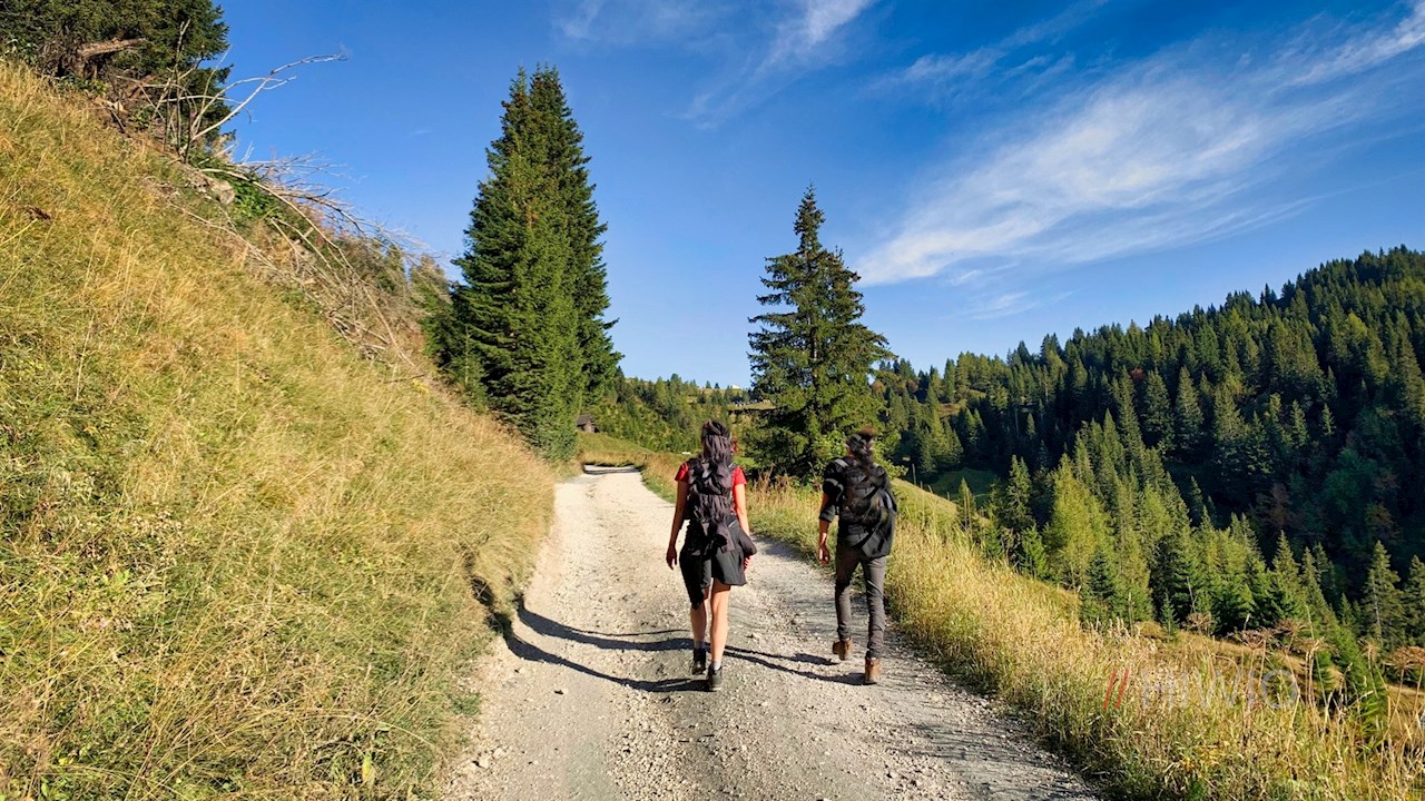 Short hike to the mountain hut La Marmotta near Corvara in Badia