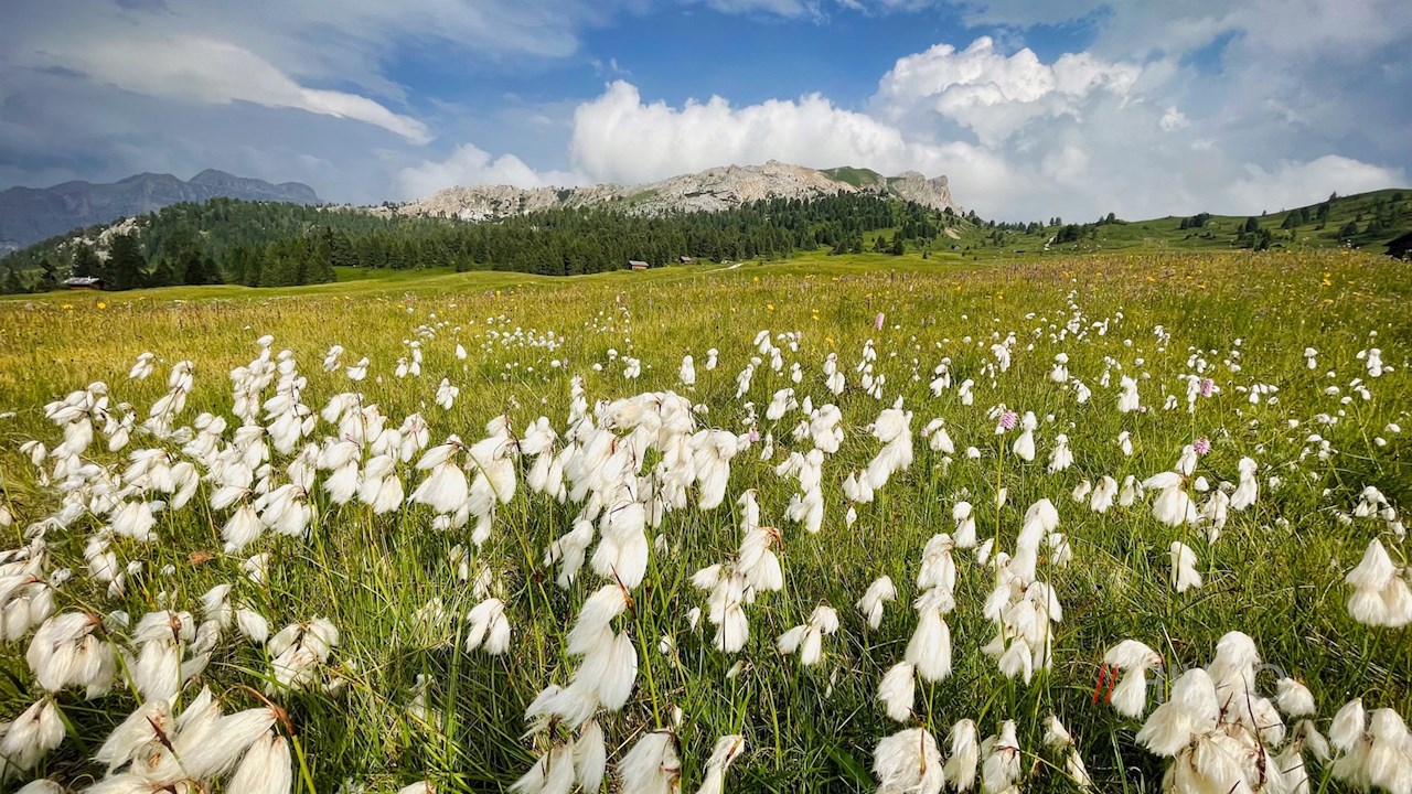 The gently undulating meadows, overgrown in summer with thousands and thousands of brightly colored flowers, have a unique charm that is due not least to the Dolomites rising up all around - it is no coincidence that the Pralongia, and probably also the meadows below it, are called the "amphitheater of the Dolomites".