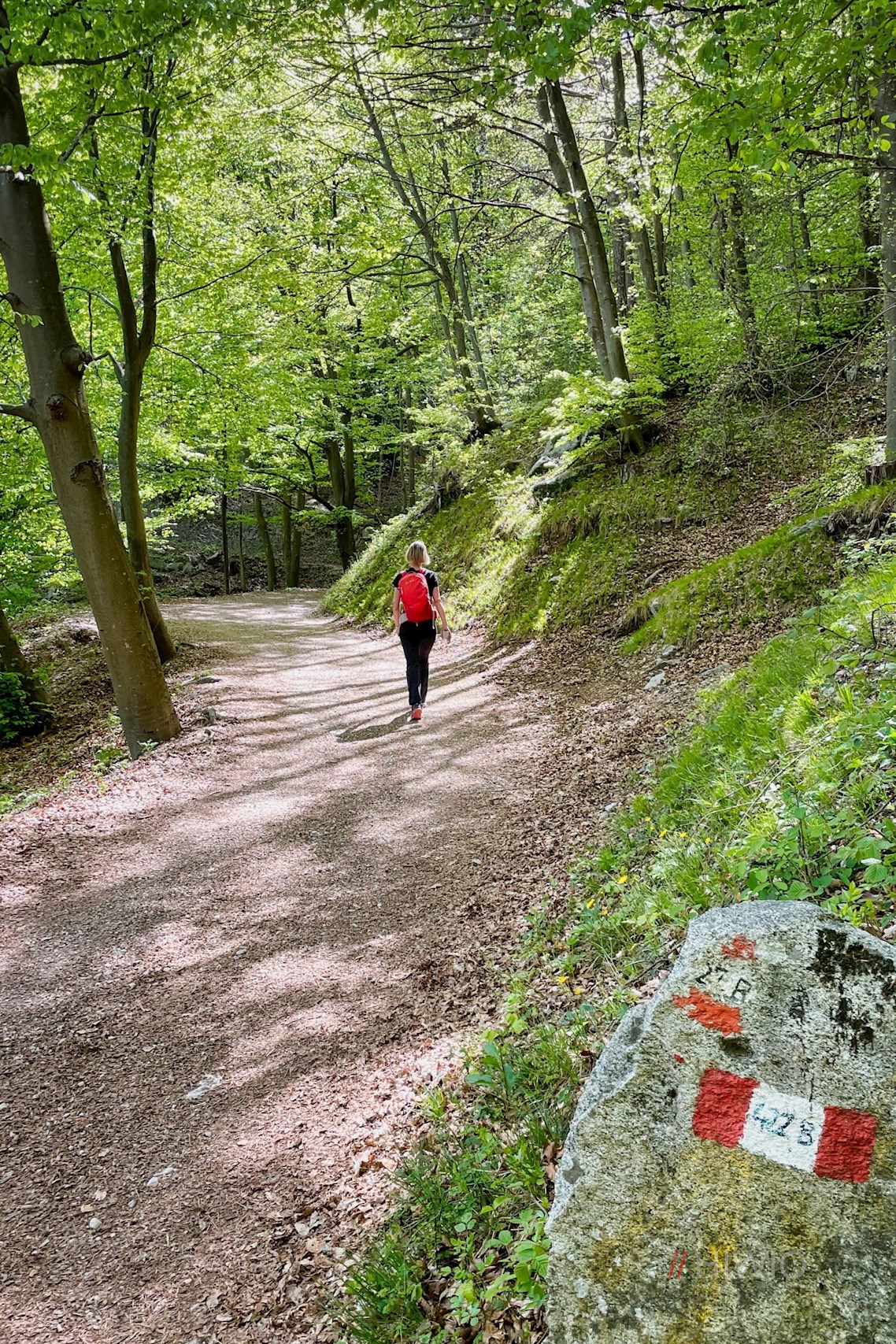 Less sure-footed hikers, meanwhile, should stick to the wide hiking trail no . 422B, which winds its way in numerous switchbacks through a picturesque beech forest.