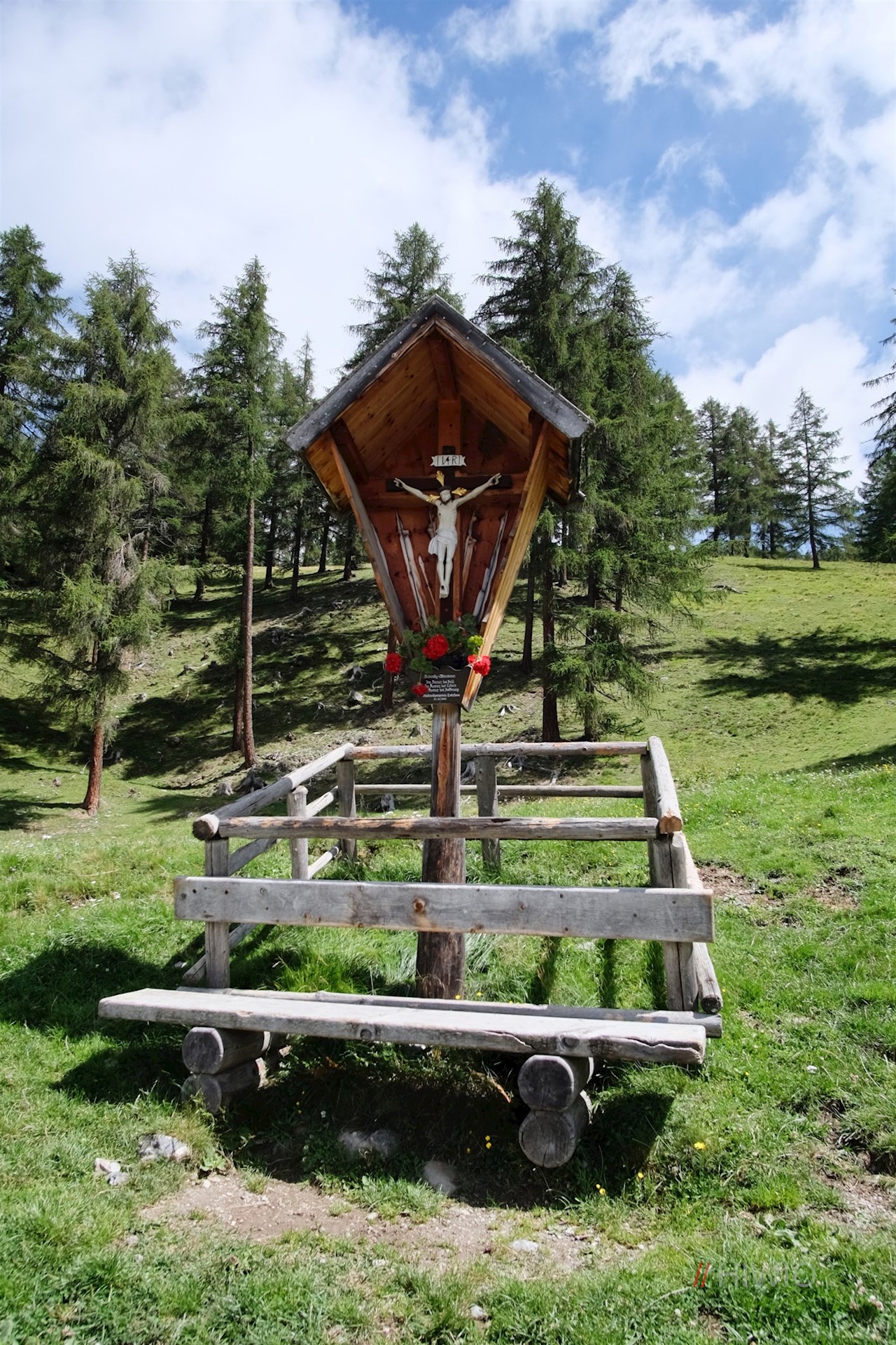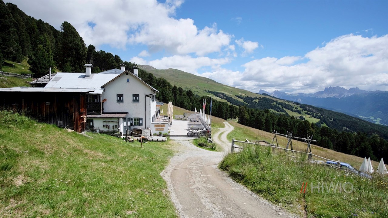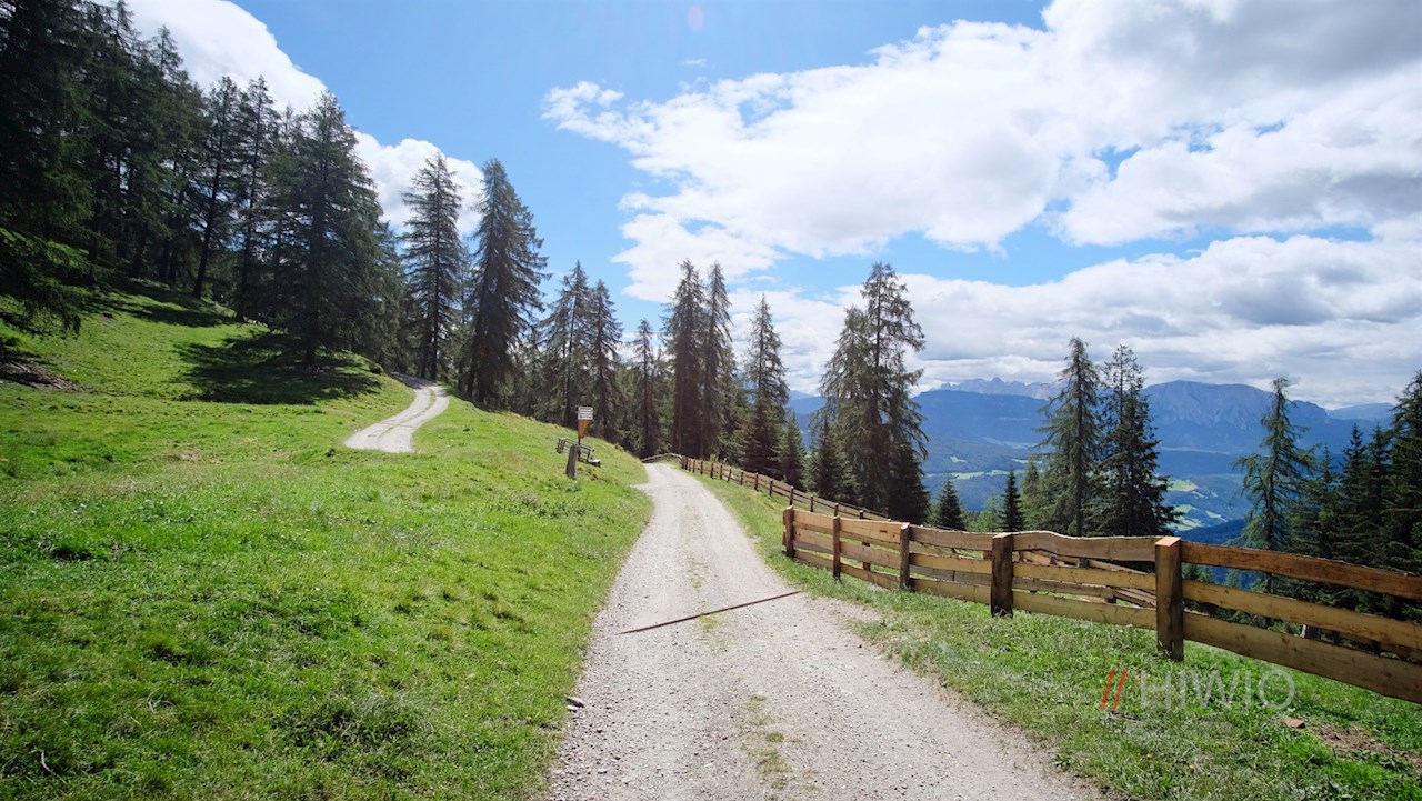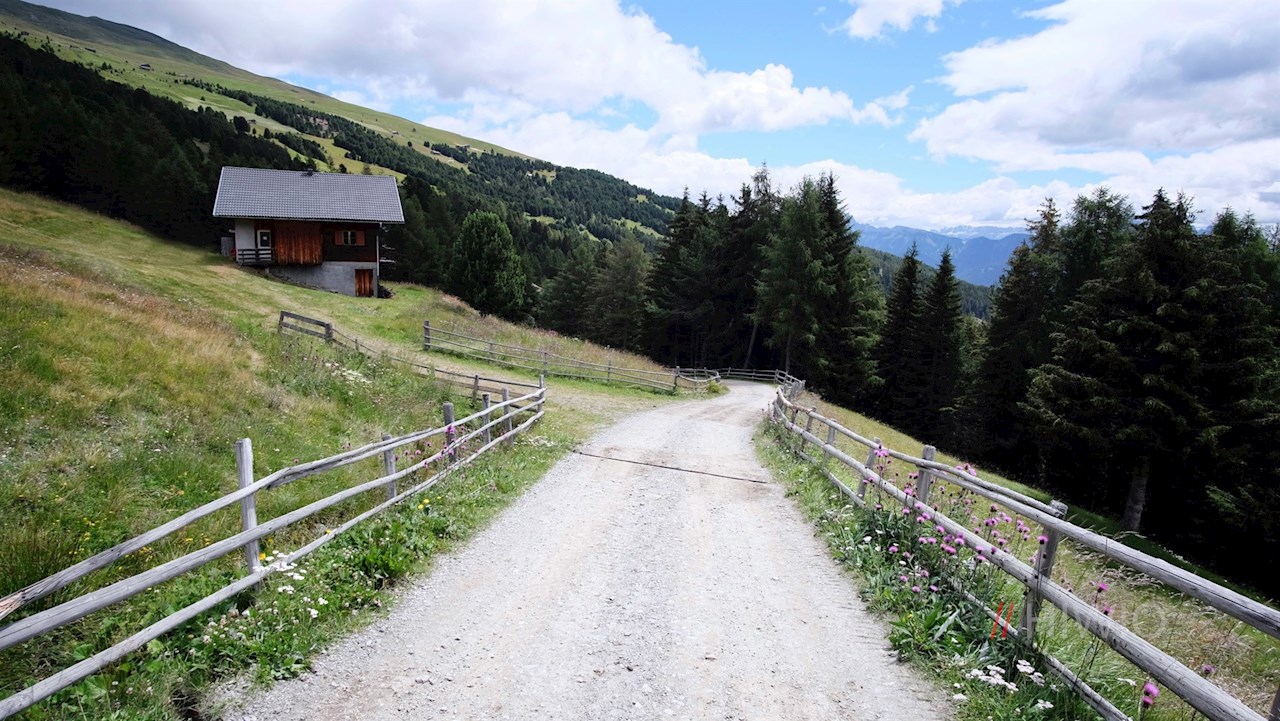 Following path no. 1 in the direction of the Rifugio Chiusa mountain hut, the wide hiking trail winds its way in a gentle ascent through sparse wooded areas and alpine meadows rich in views. Along the path, benches invite you to take a short break.