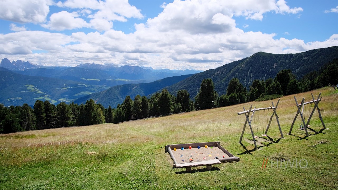 After a good hour of gentle hiking, you reach the Rifugio Chiusa mountain hut, nestled in green alpine meadows. With a view of the Dolomites opposite, it is open from the beginning of May to the end of October (2021). While the adults let their gaze wander over renowned Summits such as the Sass de Putia, the Odle di Funes peaks or the Sassolungo in Val Gardena valley and enjoy the cozy atmosphere, the children can also let off steam on the hut's own playground.