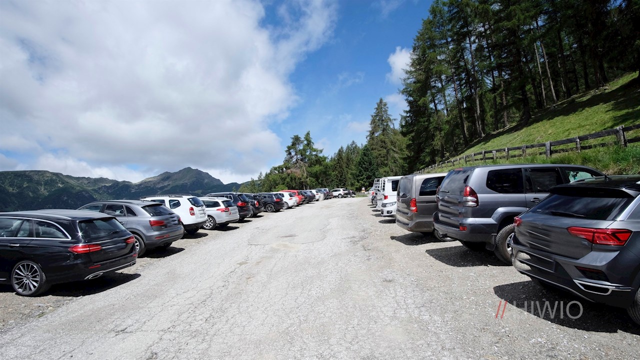 The hike to the Rifugio Chiusa mountain hut begins at the large Kühhof hikers' parking lot located above the mountain village of Lazfons.