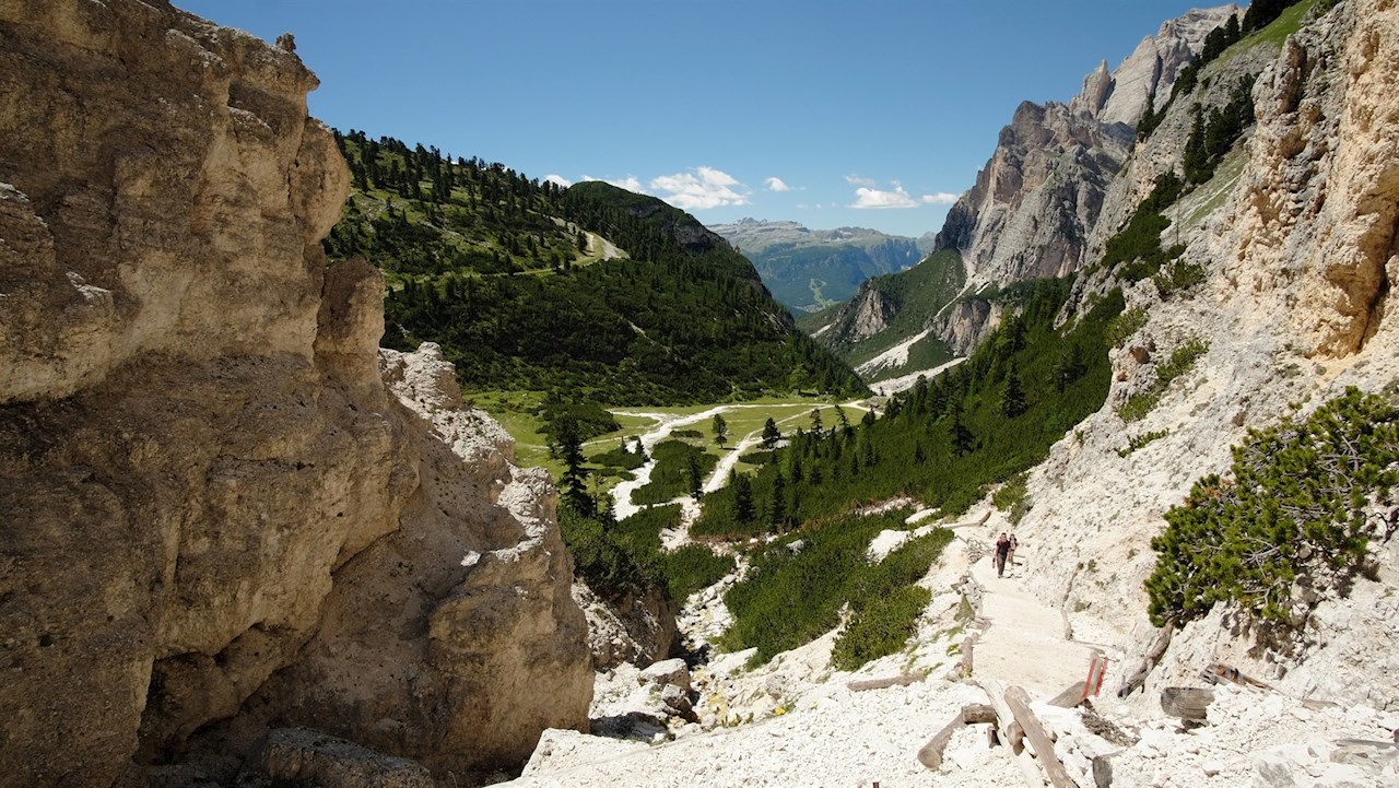 As an alternative to the descent, you could take the cable car down to the Falzarego Pass, from where you can return to the starting point by bus.