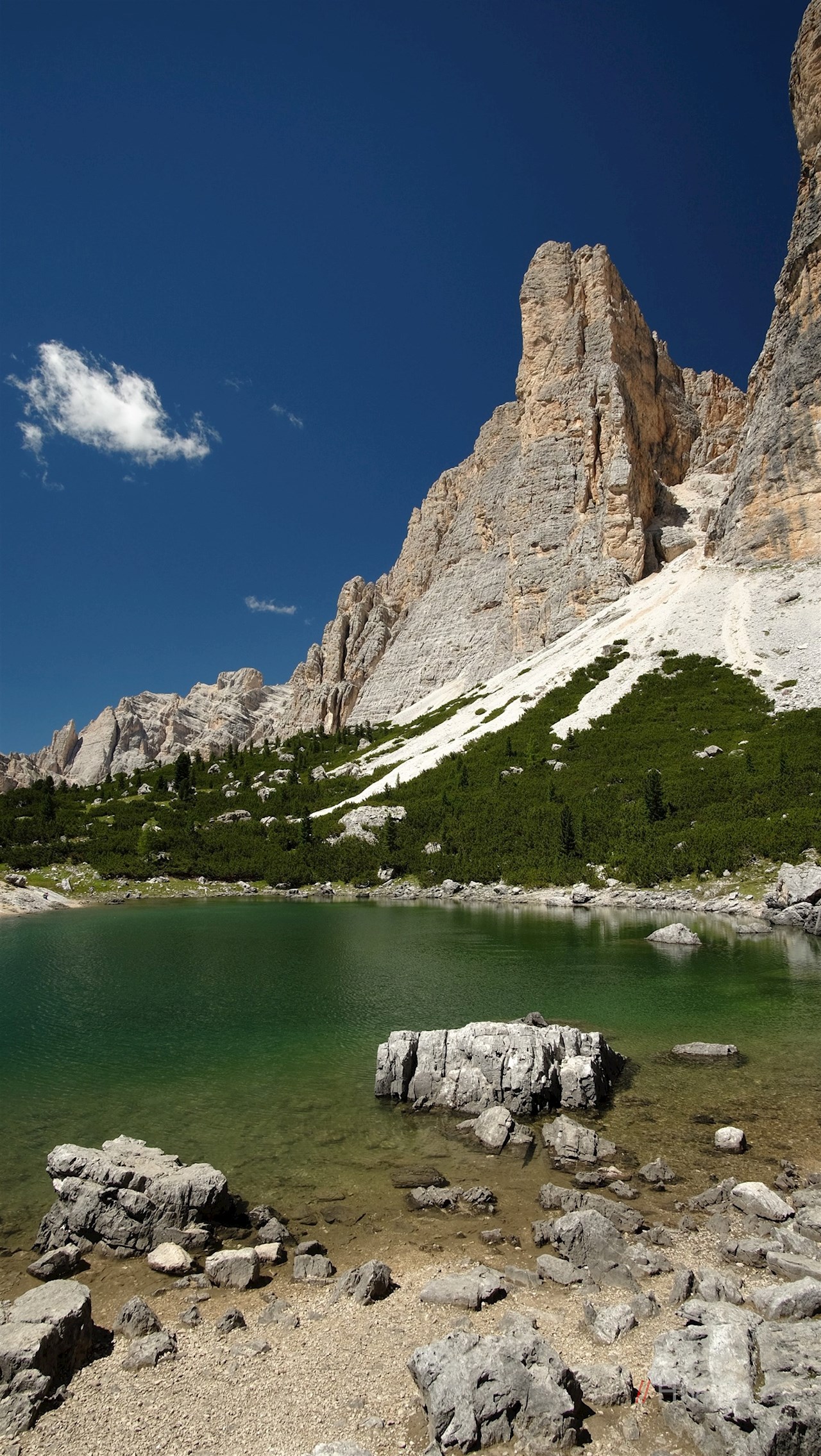 Finally, on the left side of the trail, hiking trail no. 20B branches off and it is worth making a detour to the nearby lago di Lagazuoi lake.