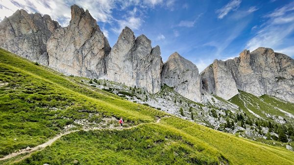 The Settesass circular hike leads through the picturesque landscape at the foot of the Settsass, opening up far-reaching views of the Dolomites towering all around.