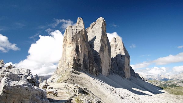 Hike around the 3 Peaks in the heart of the Sesto Dolomites. Hike to the rifugio Auronzo mountain hut, Tre Cime mountain hut and Langalm mountain hut