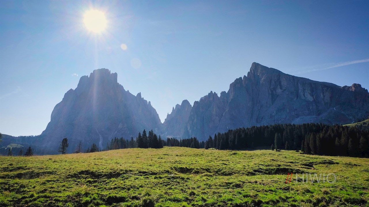 The hike to the Sasso Piatto mountain hut starts at the parking lot for hikers on Monte Pana near Santa Cristina Val Gardena.