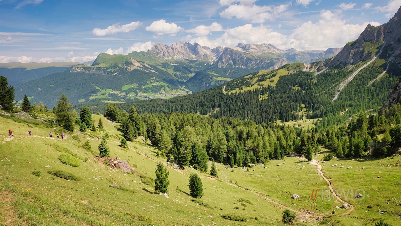 Below the rifugio Vicenza mountain hut, hiking trail no. 525 branches off to Monte Pana. It leads down to the picturesque Cunfin meadows, below which it soon meets the already known hiking trail no. 30. Follow this path back to the starting point on Monte Pana.