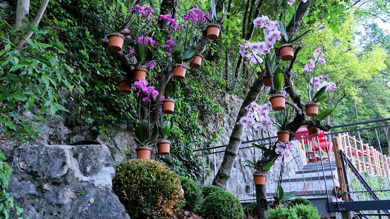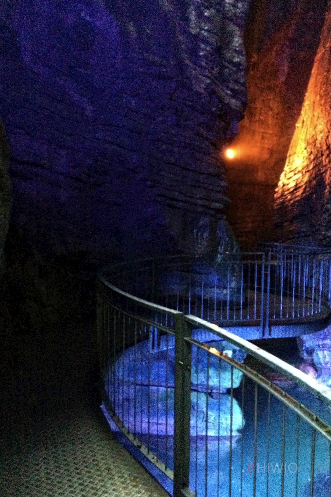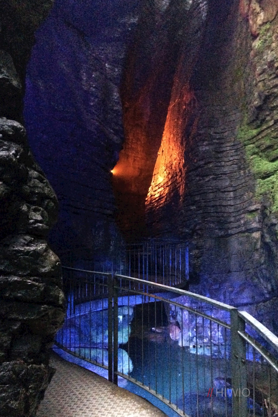 Behind the entrance, a gently ascending path winds its way deeper and deeper into the mountain in numerous curves and bends. Thanks to the tunnels, viewing platforms, paths and stairs dug into the rock, the visitors witness a truly imposing spectacle of nature: while in the lower tunnel, the so-called "grotta inferiore", one can admire the lake bathed in spectacular light and the lower part of the cascade, in the upper grotto one becomes aware of the imposing height of the Varone waterfall.