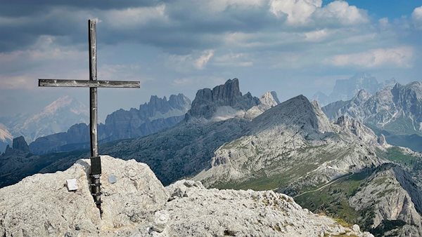 Accanto alla semplice croce di vetta si apre una vista panoramica indimenticabile: Lo sguardo spazia su innumerevoli cime dolomitiche, dal Gruppo del Puez al massiccio del Sella, al Settsass, alla Marmolada, all'Averau, alle Cinque Torri fino alla Tofana e al vicino Lagazuoi.