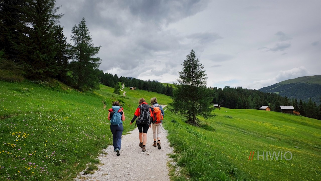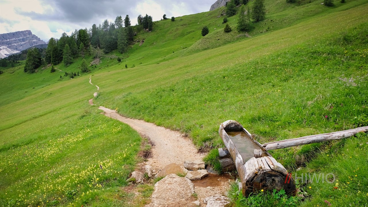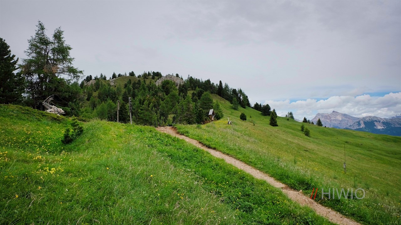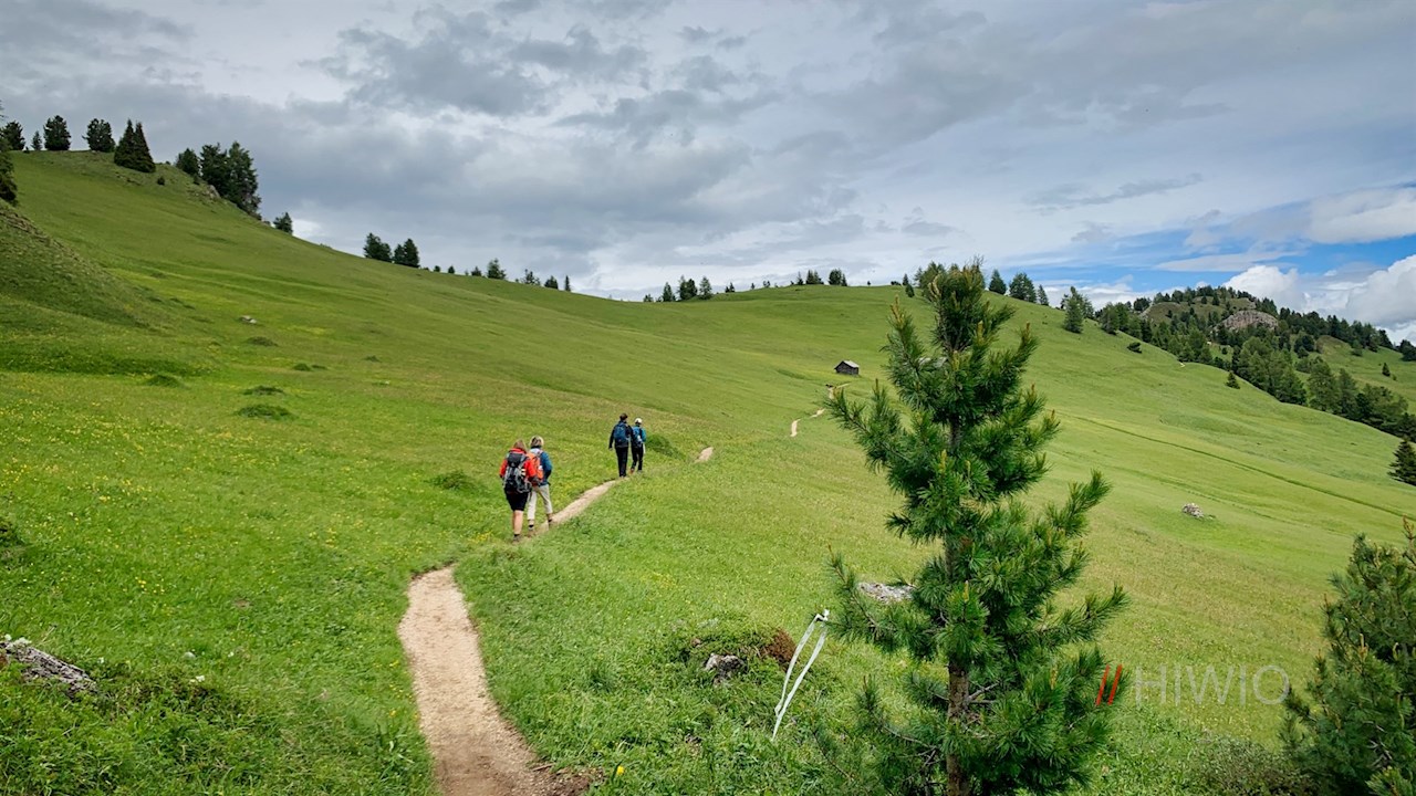 Presso la popolare malga Munt de Fornella, il sentiero escursionistico n. 8B si dirama poco dopo. Si snoda con saliscendi appena percettibili attraverso i prati ai piedi della Sass de Putia, ricchi di fiori e in parte coperti da massi, cespugli e pini cembri aromatici e profumati.