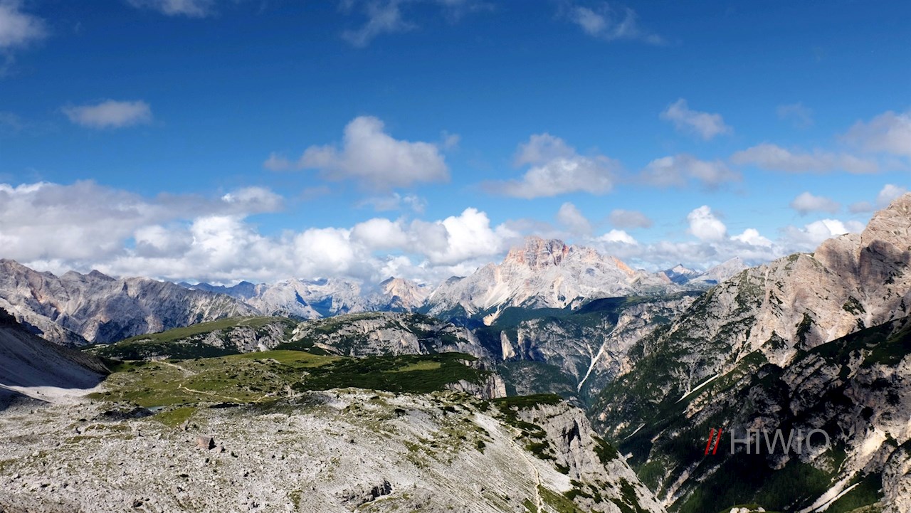 Arrivati in cima, si gode di una vista mozzafiato sulle maestose Tre Cime di Lavaredo, sull'imponente monte Paterno e su tutto l'altopiano delle Tre Cime.
