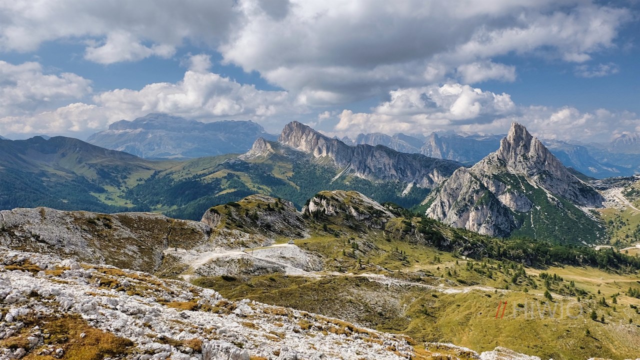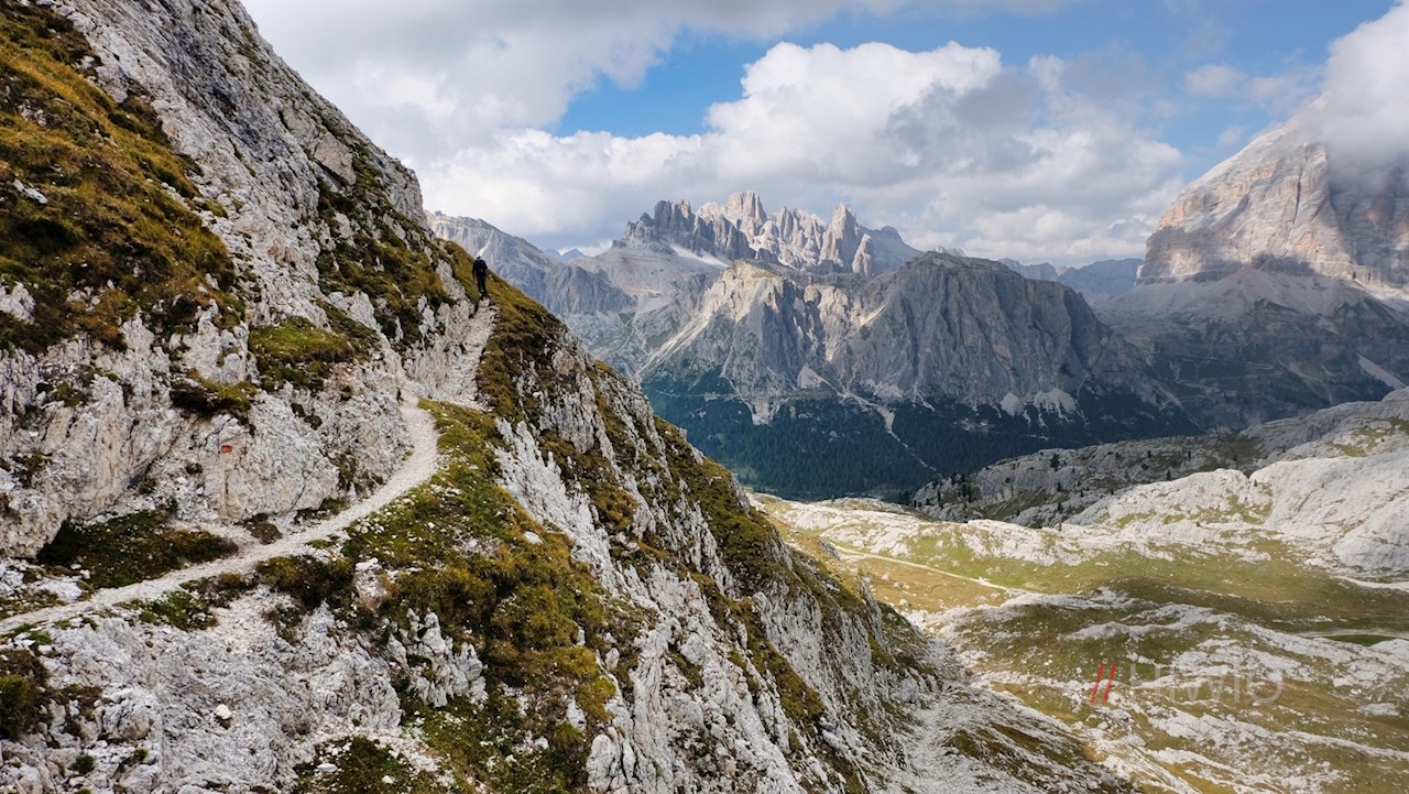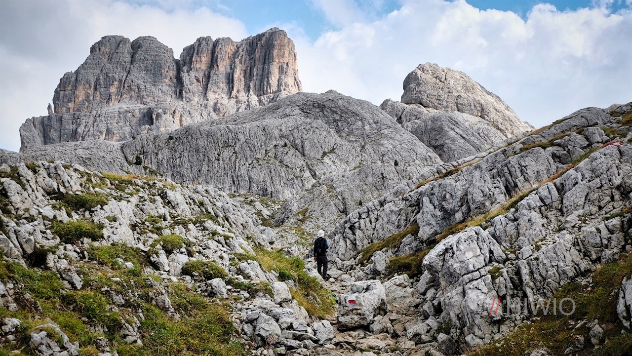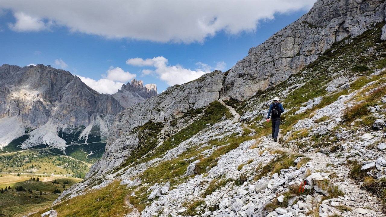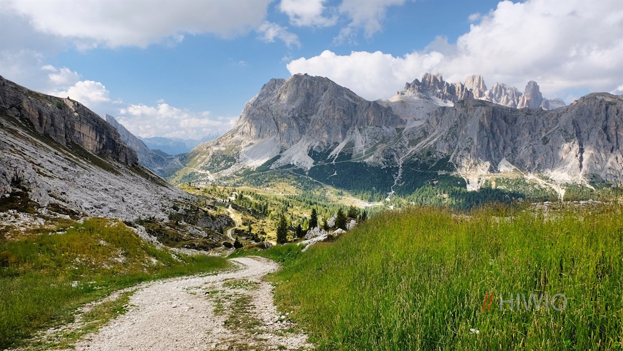 Infine, il sentiero si unisce al sentiero n. 441, che riporta direttamente al passo Falzarego con lo sfondo del Lagazuoi.