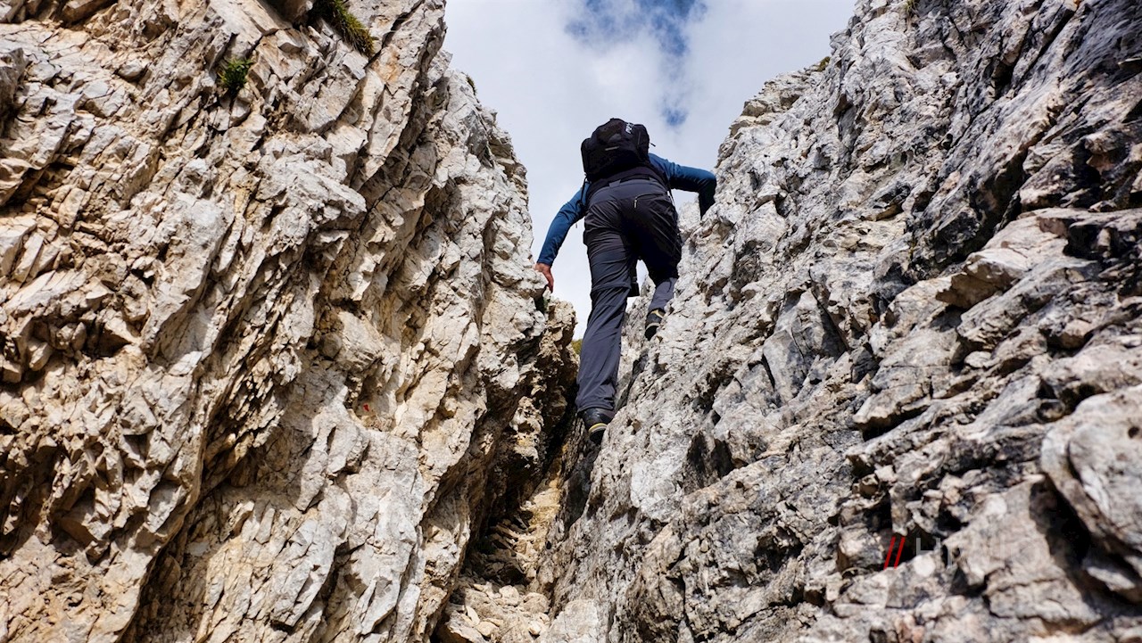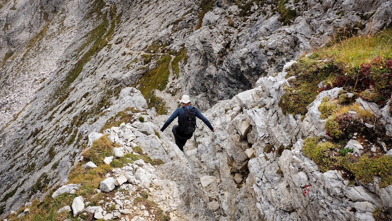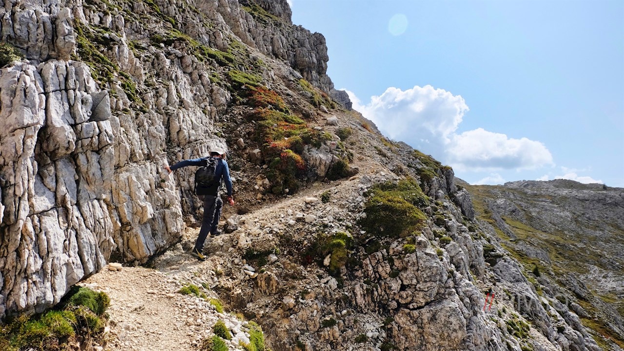 Dopo un meritato riposo in vetta, si prosegue sul sentiero n. 422, che ora scende lungo il versante sud-orientale della Croda Negra. Lungo il percorso si incontra un passaggio roccioso e un po' esposto che dovrebbe essere abbastanza facile da superare per gli escursionisti abituati alla montagna e dal passo sicuro.