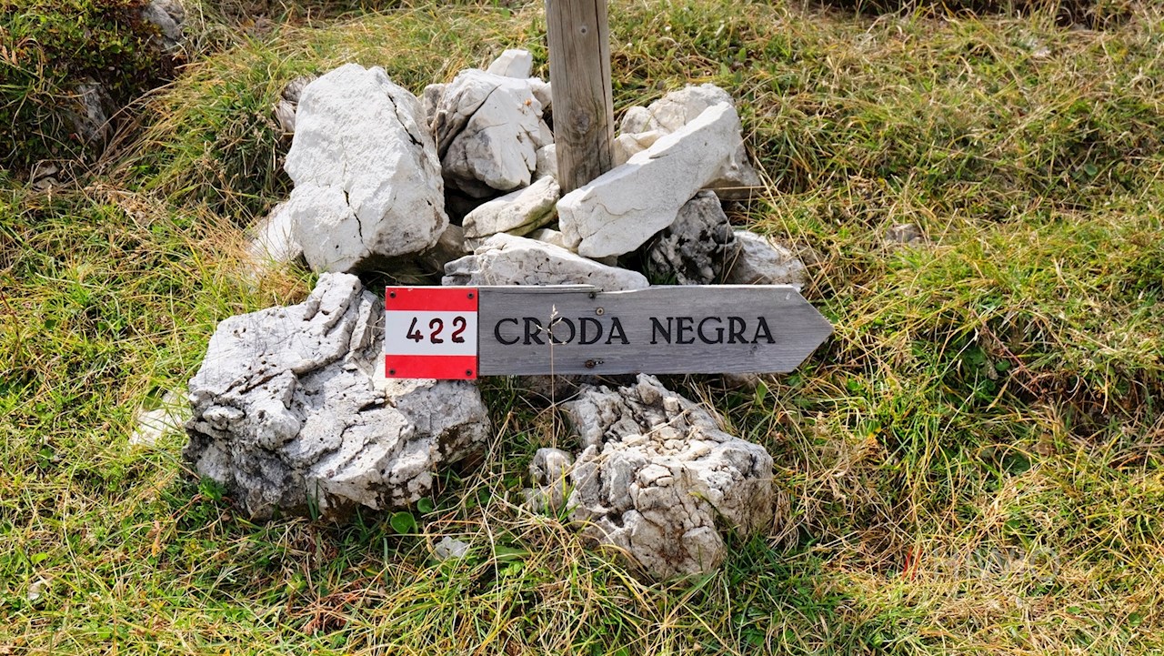 Ai piedi della Croda Negra, il sentiero escursionistico n. 422 si dirama a destra. Dapprima sale piacevolmente attraverso i prati di montagna ricoperti di pietre e poi supera la struttura sommitale in parte scoscesa, in parte ricoperta di ghiaia ed erbosa. Durante il percorso si incontrano alcuni passaggi in pendenza e un piccolo camino di roccia, abbastanza facile da superare per gli escursionisti abituati alla montagna.