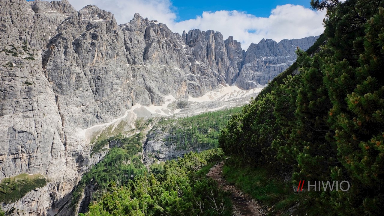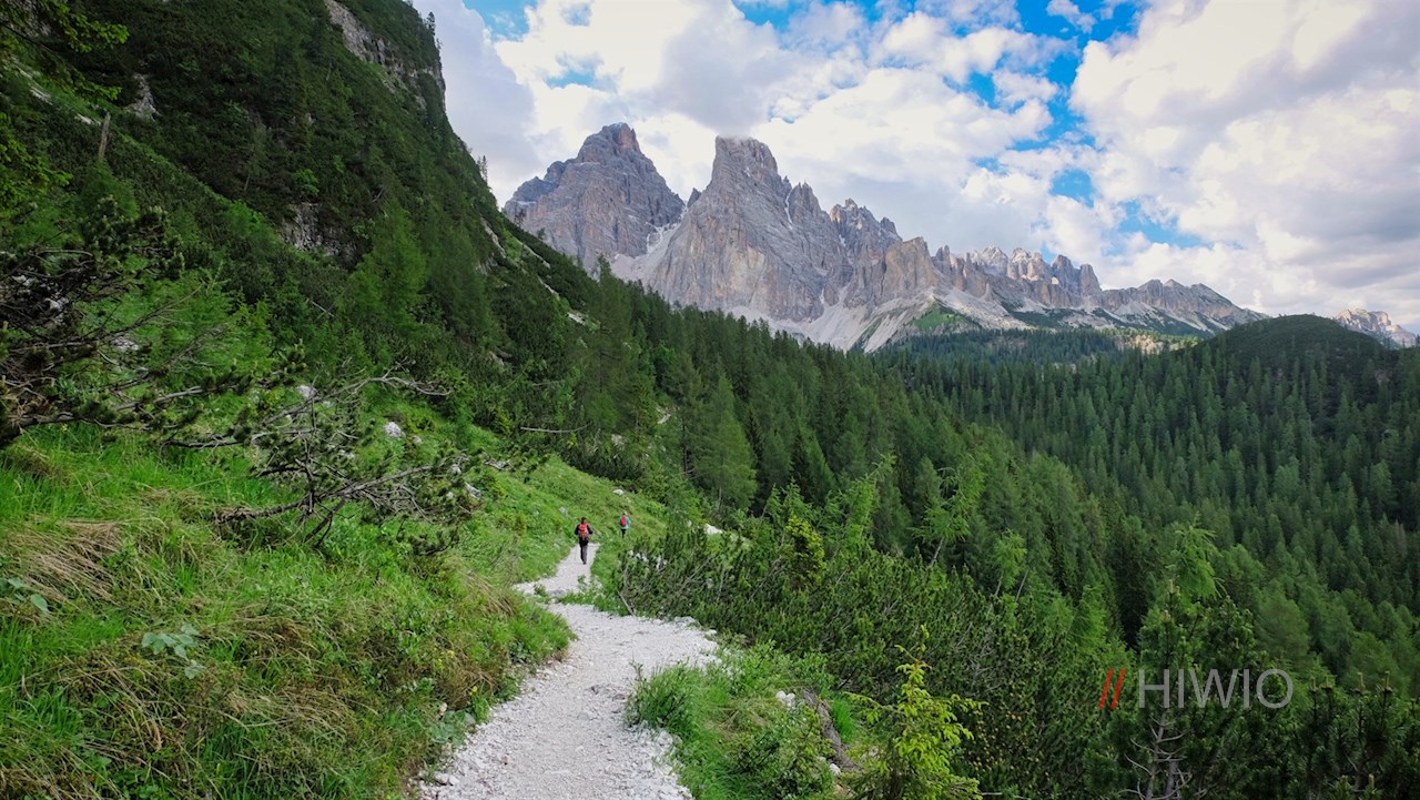 Seguire le indicazioni per Rif. Vandelli. Presto si dirama sul lato destro il sentiero 215 Lago di Sorapis. Si inizia con un sali e scendi attraverso un bosco per poi proseguire il sentiero, dolcemente ascendente, diventando un pò più stretto.