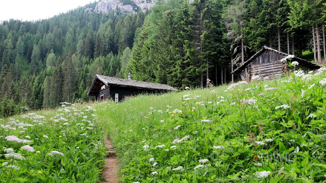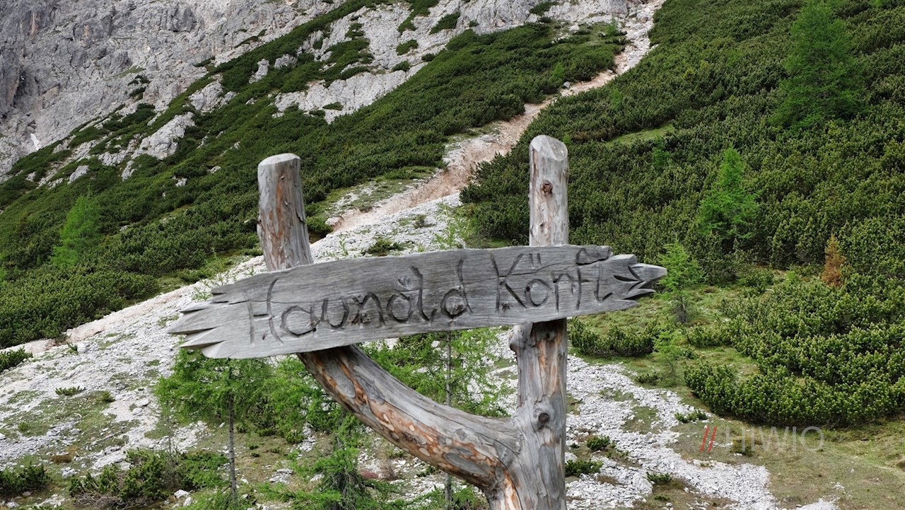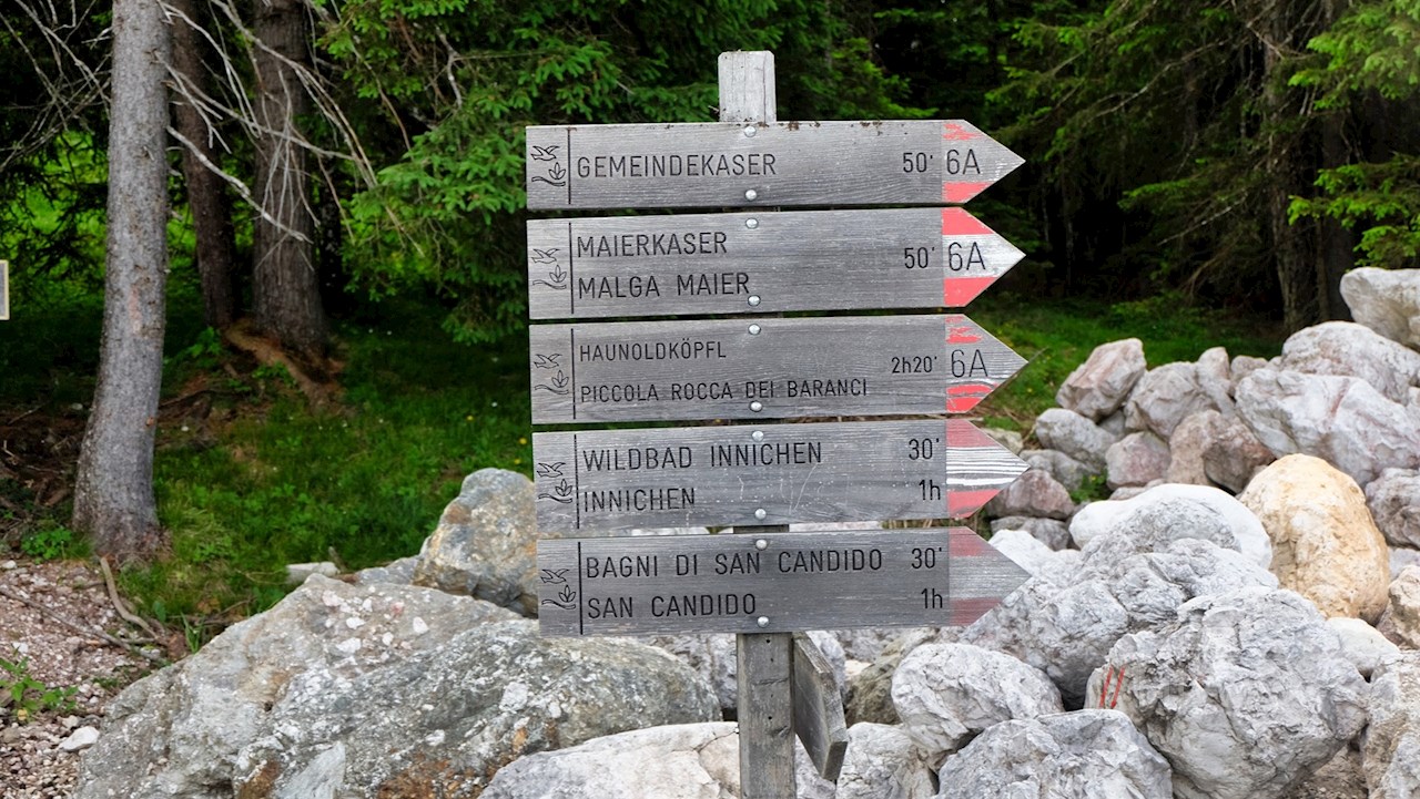 Arrivati in quota si segue l'ampio sentiero forestale n. 6A in leggera salita in direzione Haunoldköpfl-Piccola Rocca dei Baranci, da dove poco dopo si dirama il sentiero n. 7.