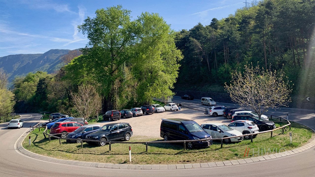 L'escursione sul sentiero alla scoperta della natura di Castelfeder inizia al parcheggio del "Campo Sportivo", che si trova direttamente sulla via val di Fiemme tra Ora e Montagna.