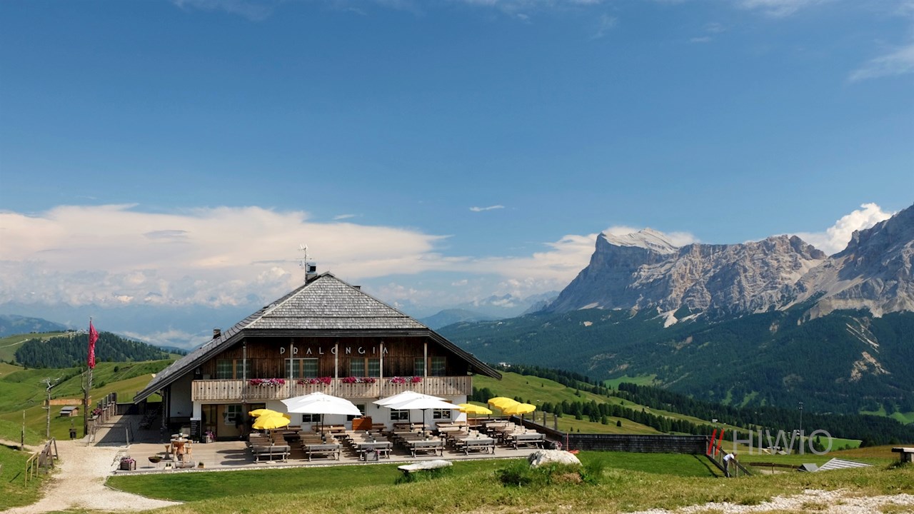Proseguendo sul sentiero n. 22 in direzione Pralongia, l'escursione continua in leggera salita attraverso il dolce paesaggio alpino ornato da pittoreschi fienili in legno.