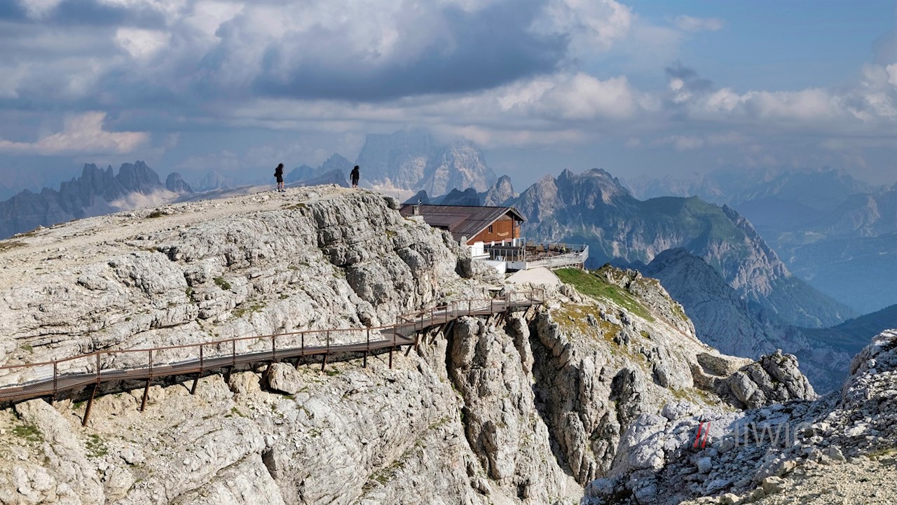 In meno di tre minuti la funivia sale i 630 metri di dislivello dal passo sulla cresta del Lagazuoi, dove il rifugio più alto di Cortina d'Ampezzo invita a fermarsi a mangiare: il rifugio Lagazuoi. Oltre che per il gustosi piatti, è noto soprattutto per la vista mozzafiato sulle Dolomiti che si apre sull'ampia terrazza panoramica.