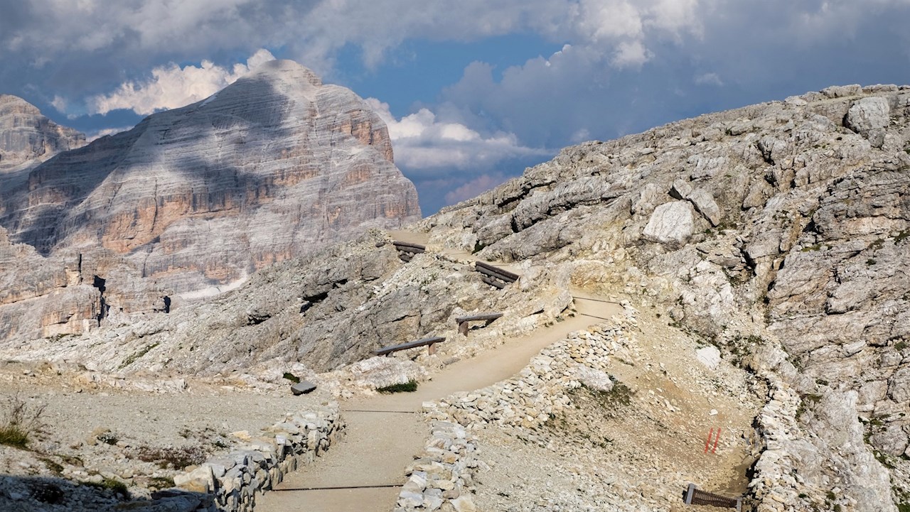 Durante la prima guerra mondiale, la zona del passo Falzarego fu teatro di una crudele guerra di posizione. Il fronte passava proprio attraverso il Lagazuoi: Mentre i soldati di montagna austro-ungarici dominavano le posizioni superiori e la cresta, gli italiani cercavano di farsi strada dal basso. Di conseguenza, vennero scavate trincee e corsie, costruiti rifugi e postazioni per i soldati, scavate gallerie di rifornimento nelle rocce e costruite le vie ferrate, oggi così popolari, per consentire ai soldati di raggiungere le posizioni sul monte nel modo più rapido e sicuro possibile.