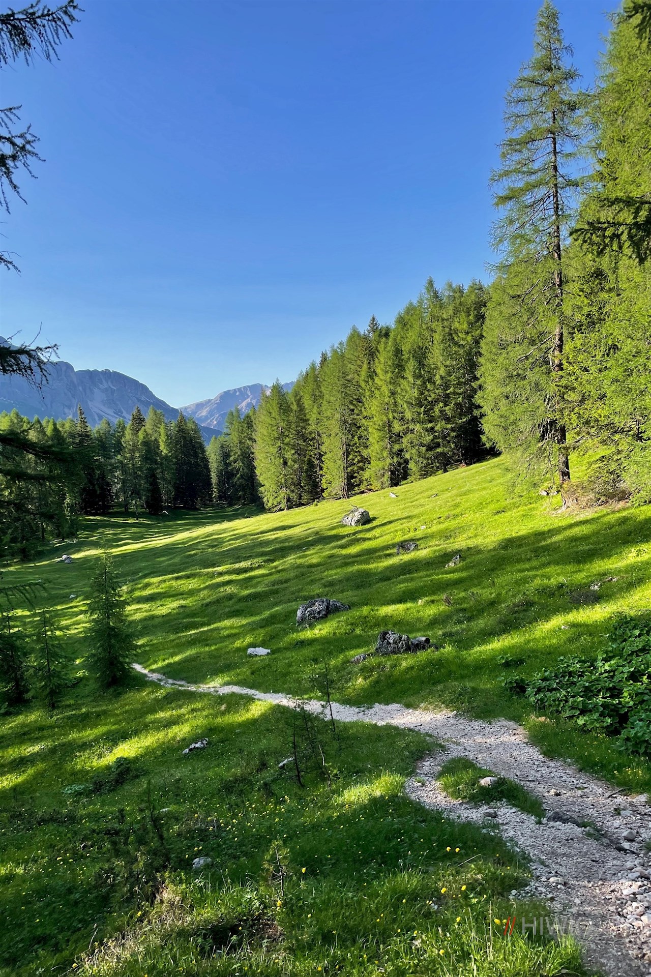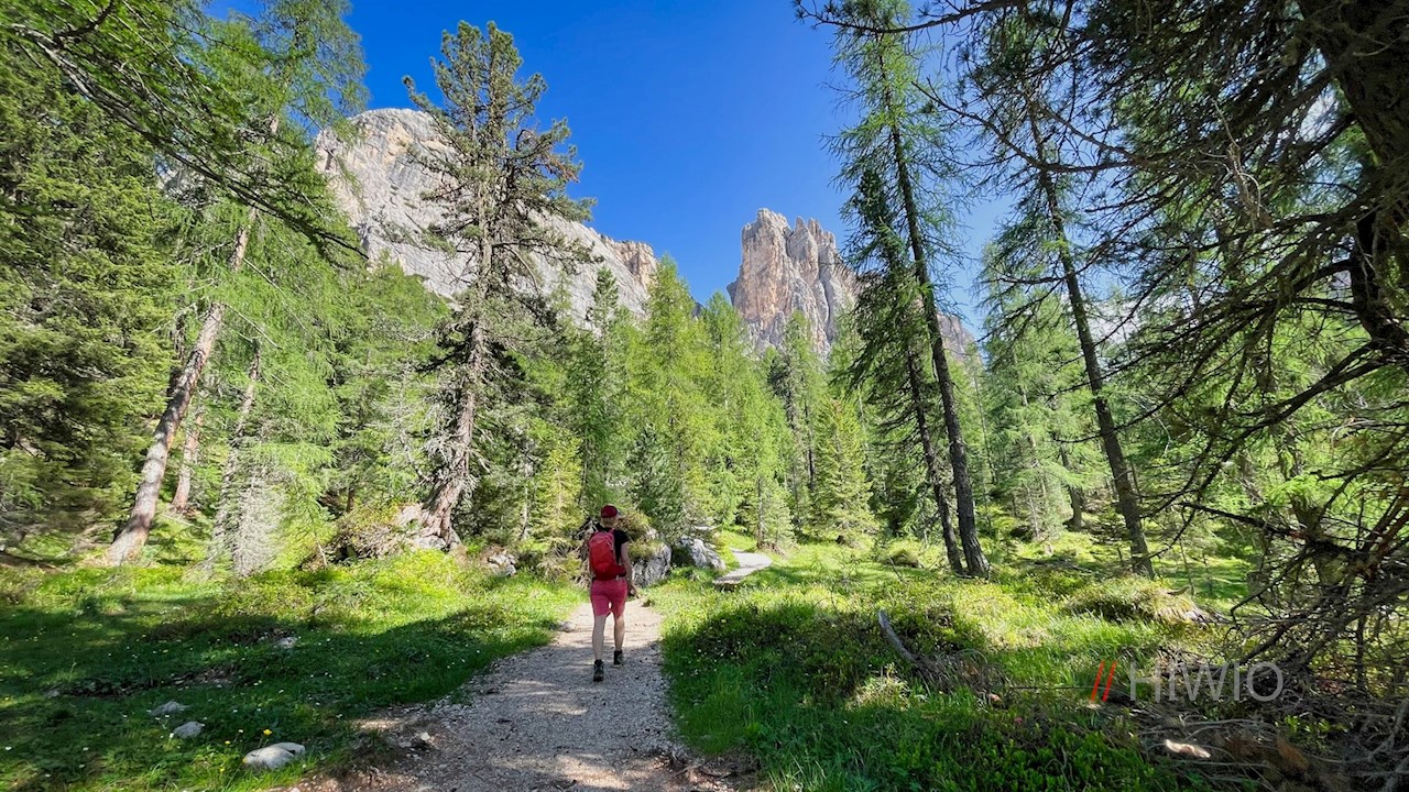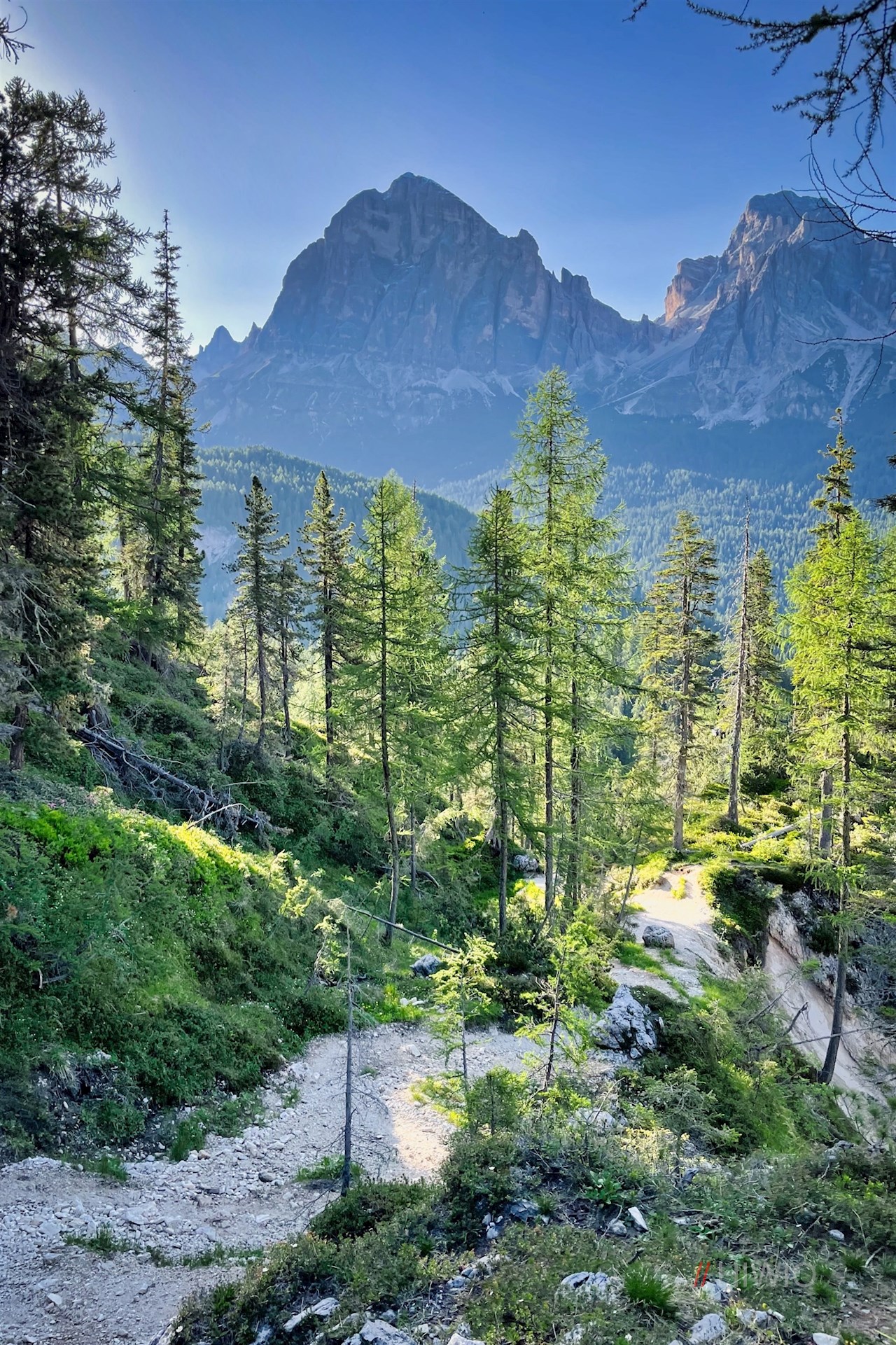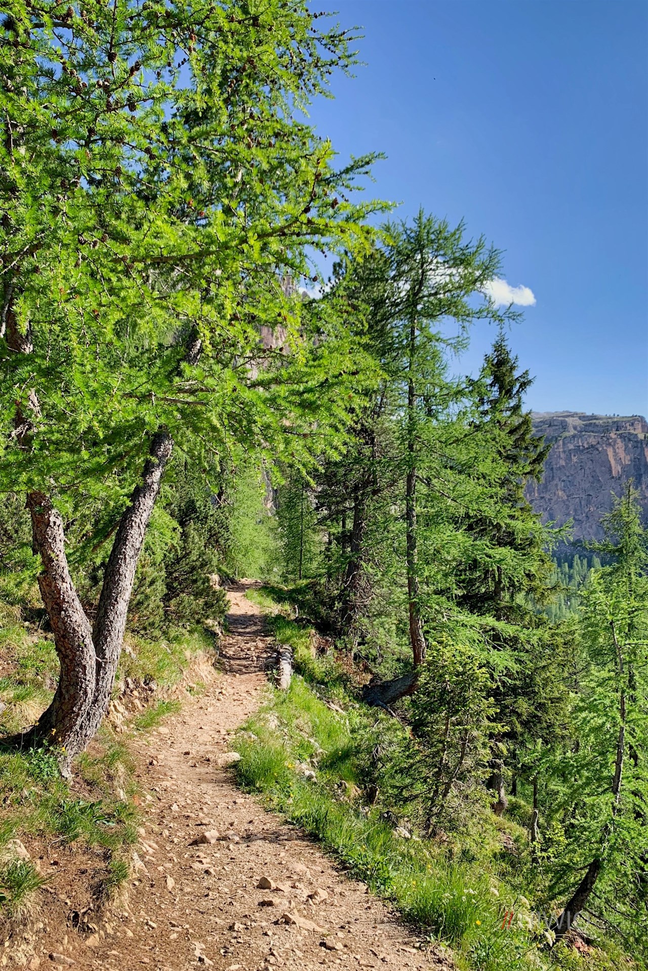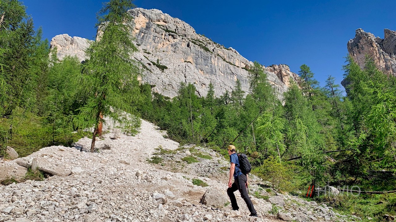 Seguire prima il sentiero 437 in direzione Rif. Croda da Lago/G. Palmieri. Il sentiero, per lo più dolce, attraversa boschi radi con il rumore dei ruscelli vicini.